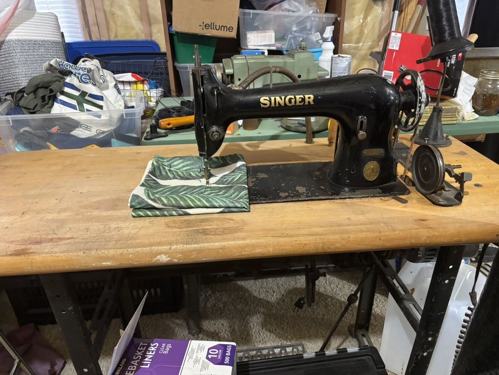 ZelleThis is a vintage Singer 31-15 industrial sewing machine, known for its durability, reliability, and classic design. Built with a solid cast-iron body, this straight-stitch machine was widely used in tailoring shops and light industrial work, and it still performs smoothly today.