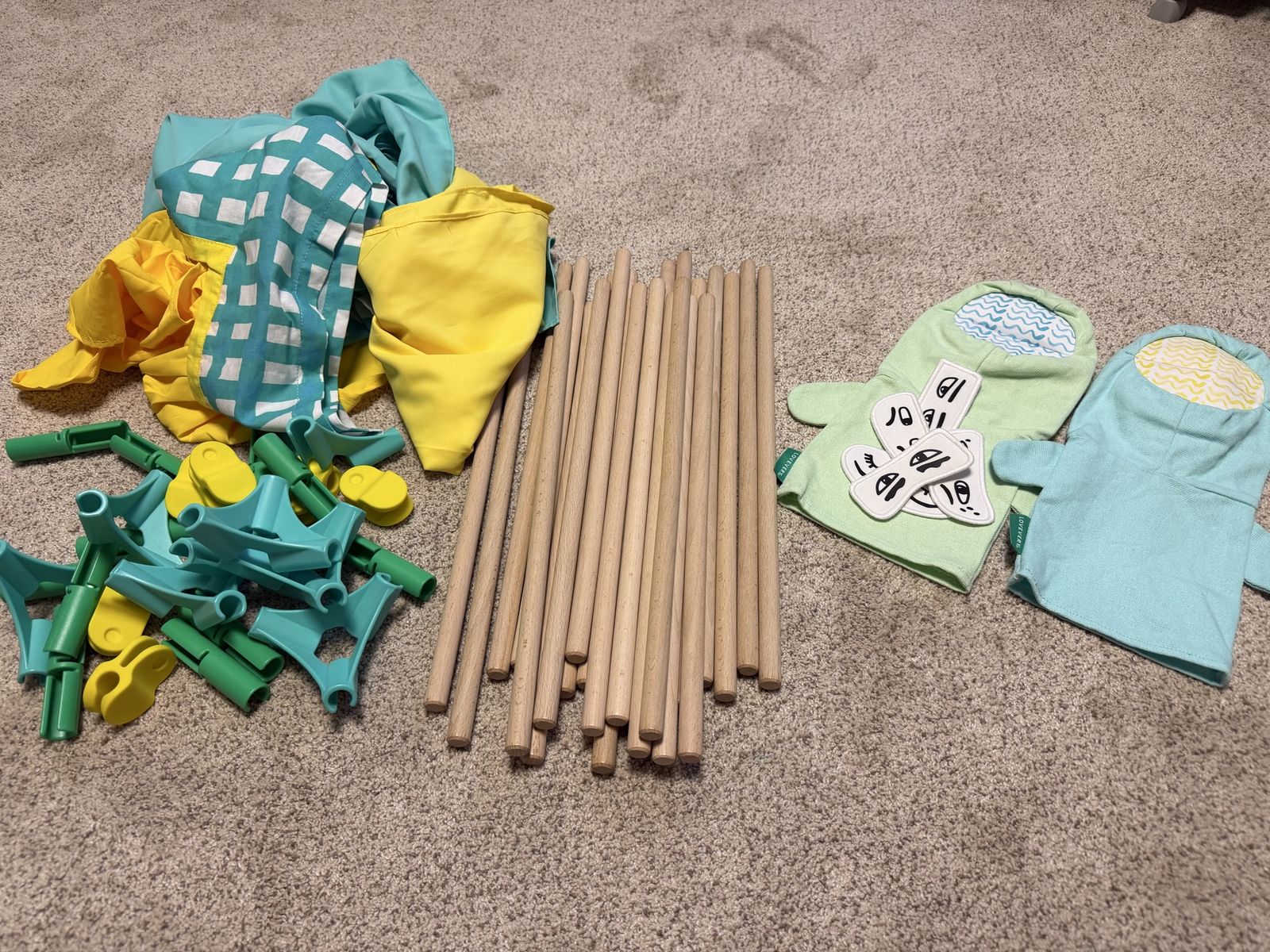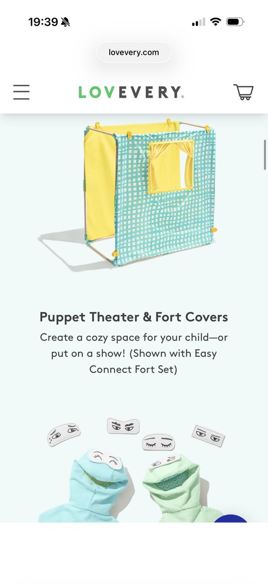 VenmoBuild a tent/fort - includes hand puppets with swappable eyes. Breaks down super compact to store. Perfect condition, all pieces.