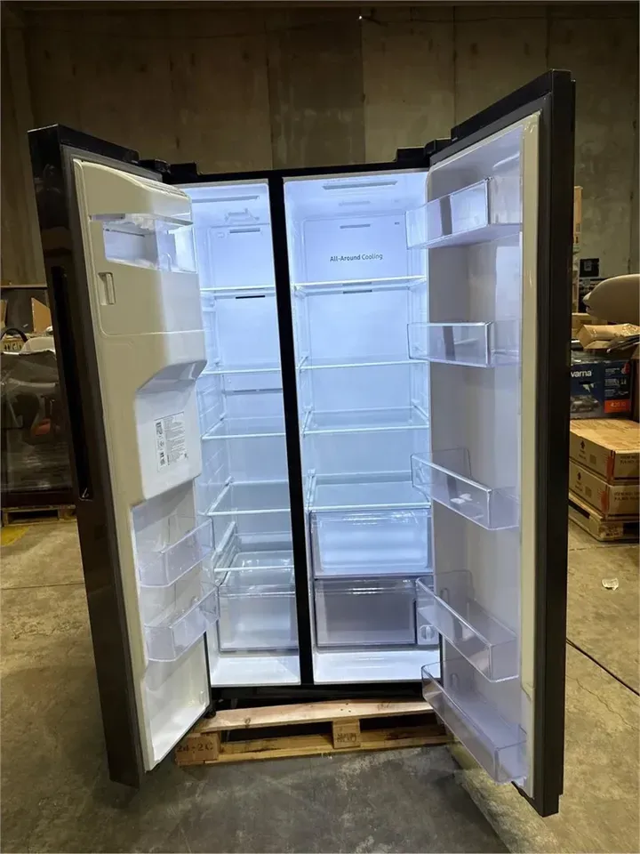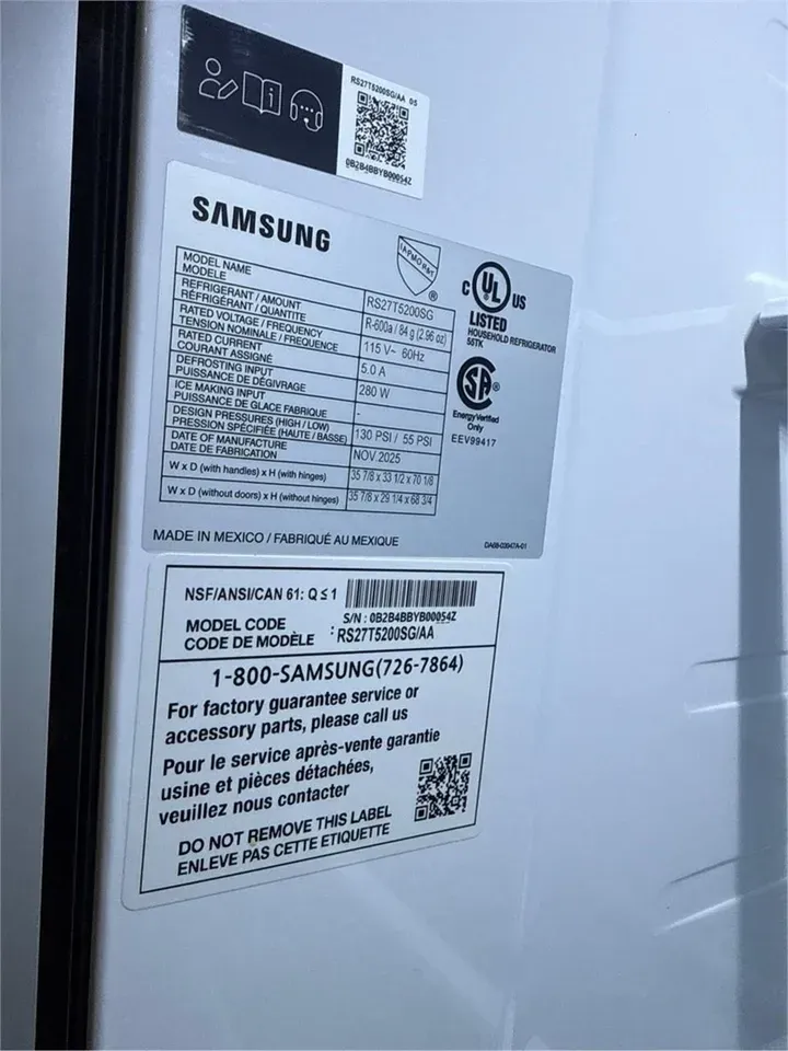 free nearby delivery 27.4 cu. Ft. Total capacity; modern design with clean lines; fingerprint resistant finish; all-around cooling for even temperature distribution; freezer capacity 9.5 cu. Ft.; dimensions with door and handles 35.88 in. W x 33.5 in. D x 70.06 in. H; dimensions without hinges and door 35.88 in. W x 28.94 in. D x 68.63 in. H