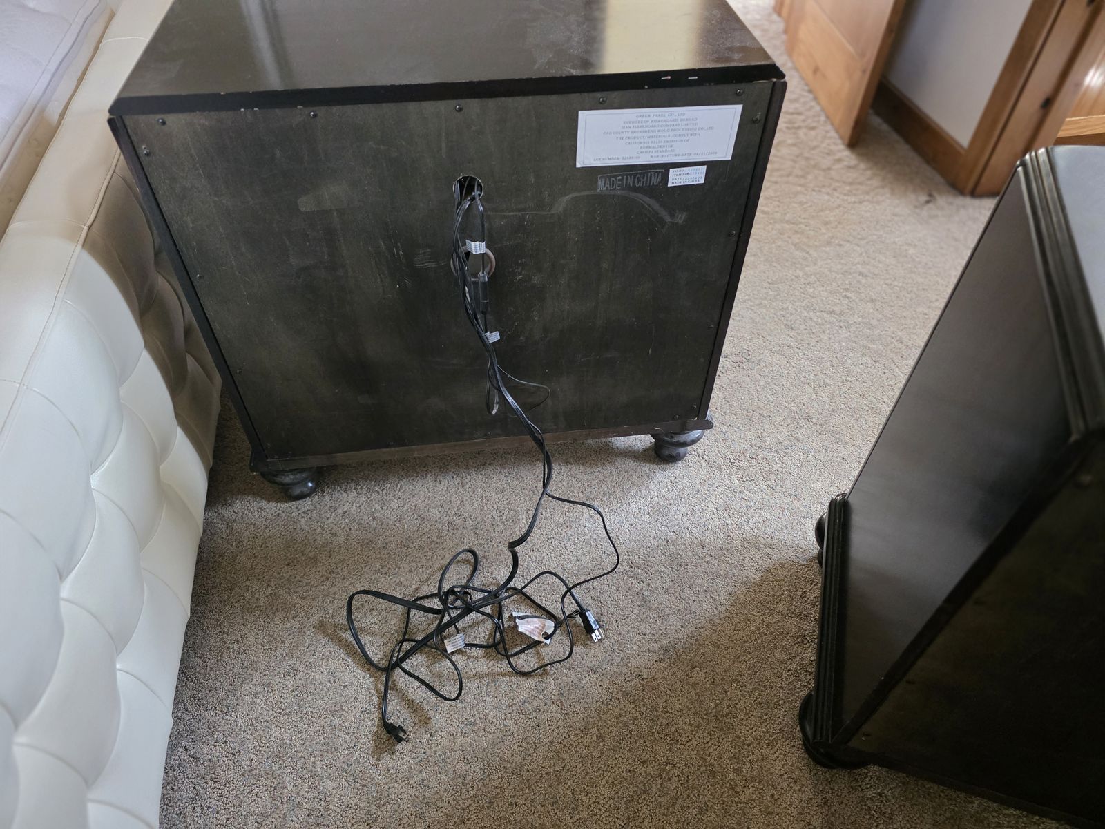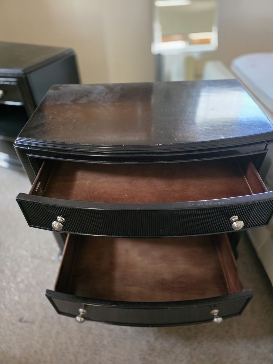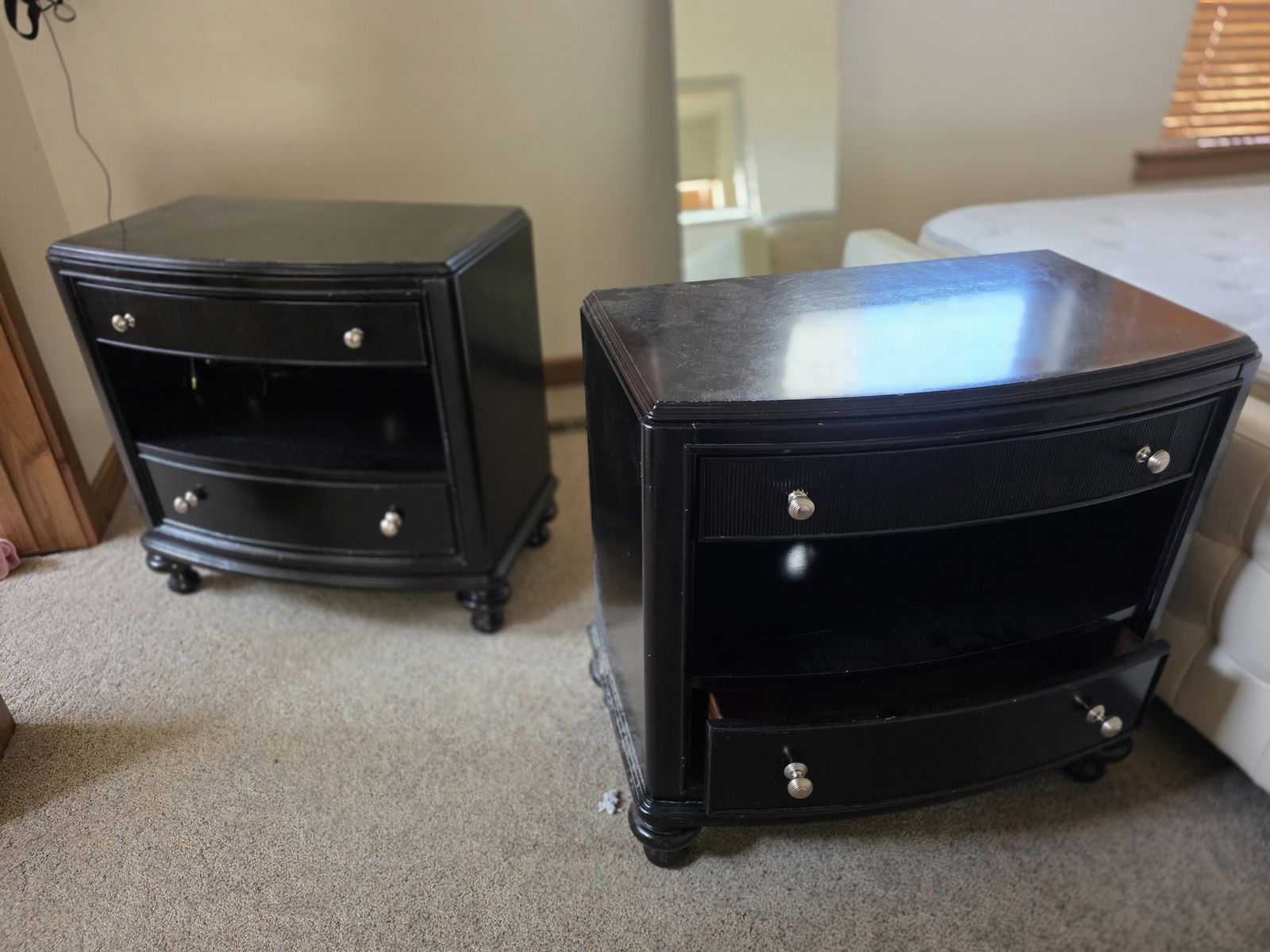 3rd nightstands- 2 black 2 drawer. Open center with light- $50 ea.