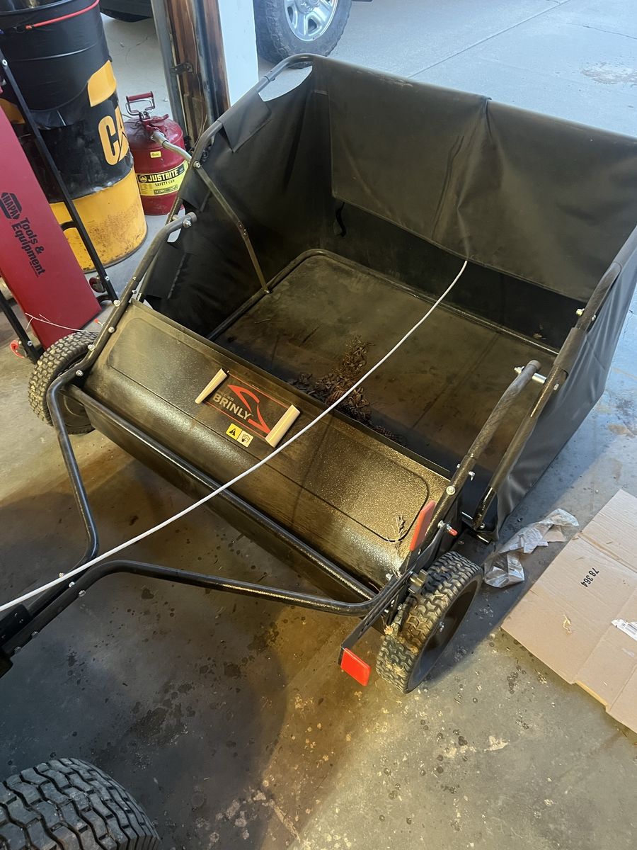 Lawn sweeper brand new only used once I decided to go a different route for my grass clippings. Bought brand new for 364 dollars.