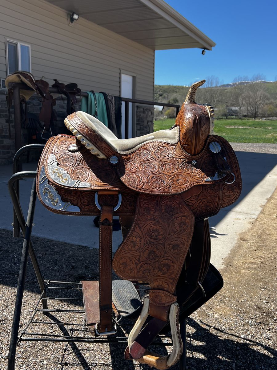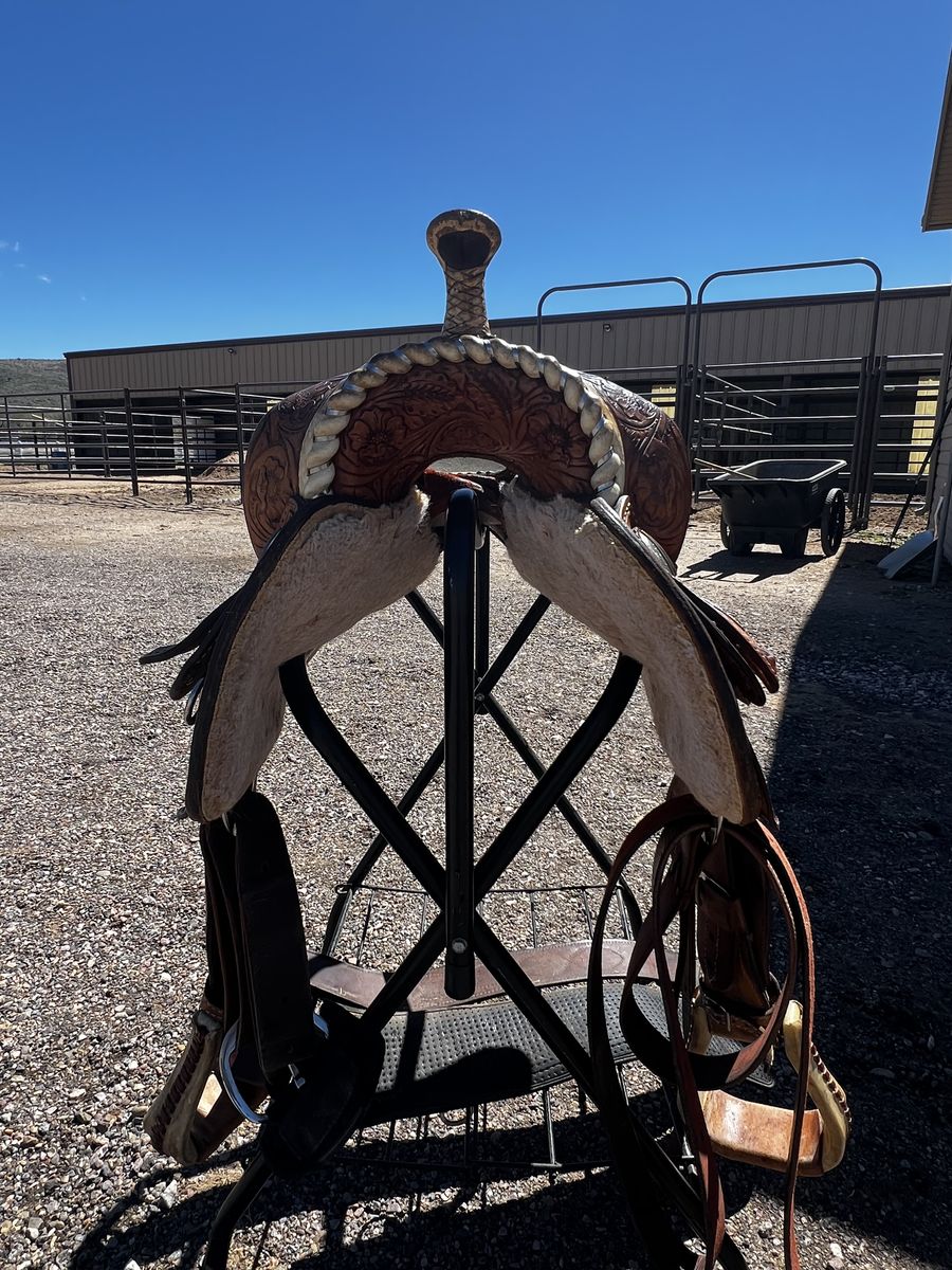 VenmoWell taken care of beautiful show saddle with matching bridle, reins and breastcollar. It's made by American Saddlery has a 13.5 " seat, 7" gullet. Asking $1800. for the set.