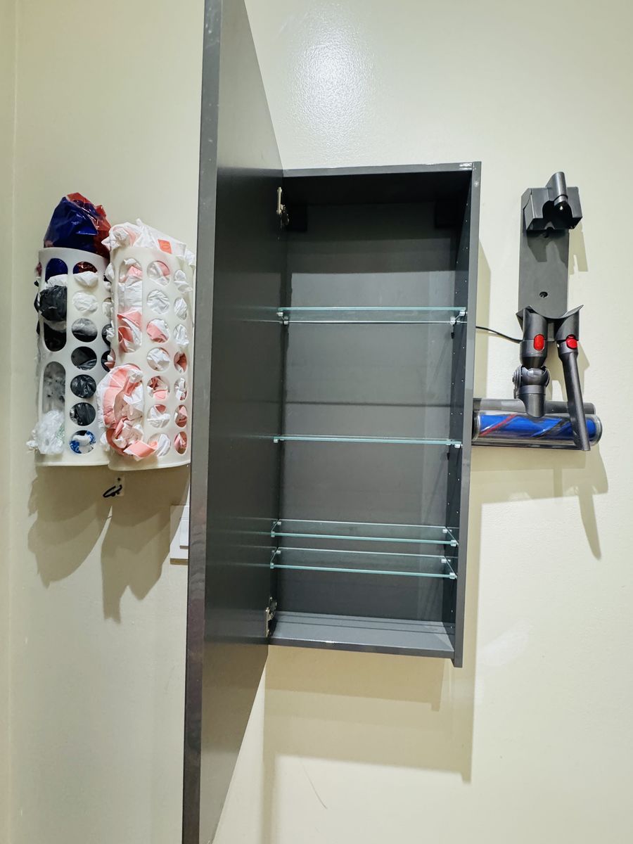 VenmoIKEA wall cabinet. Acrylic and MDF. 4 adjustable glass shelves. Color: Grey