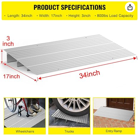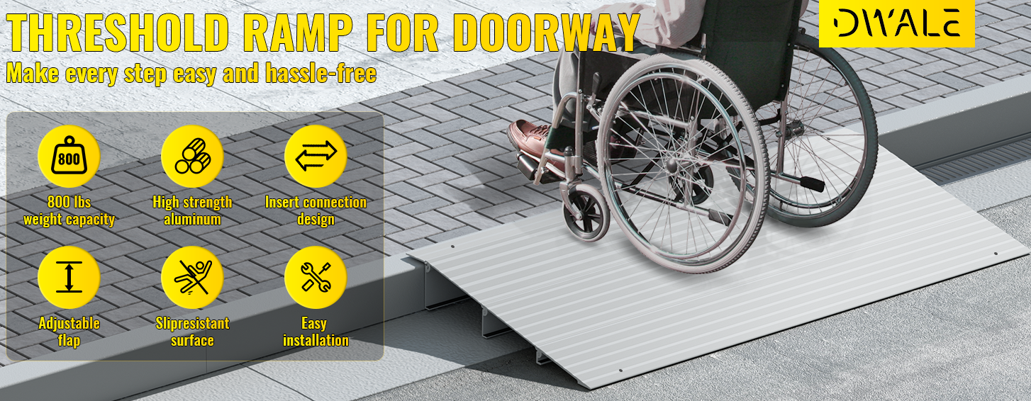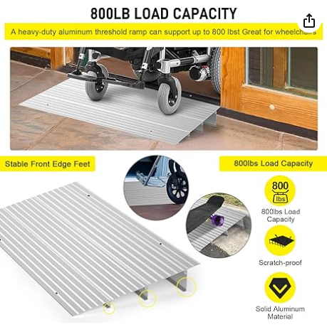 · 800 LB LOAD CAPACITY-A heavy-duty aluminum threshold ramp can support up to 800 lbst Great for wheelchairs, scooters, electric vehicles, walkers, crutches to pass through.