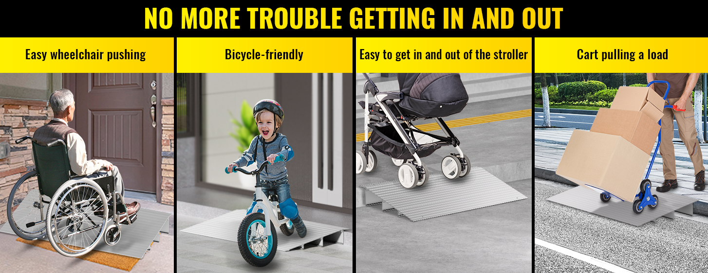 · WIDE APPLICATION-This portable threshold ramps can easily solve your troubles such as high threshold slope and inconvenient access, can be used for home and , semi-permanent ramps, portable ramps, ideal for wheelchairs, scooters, trucks, wheelbarrows, bikes, the elderly and so on, to create a smooth transition.