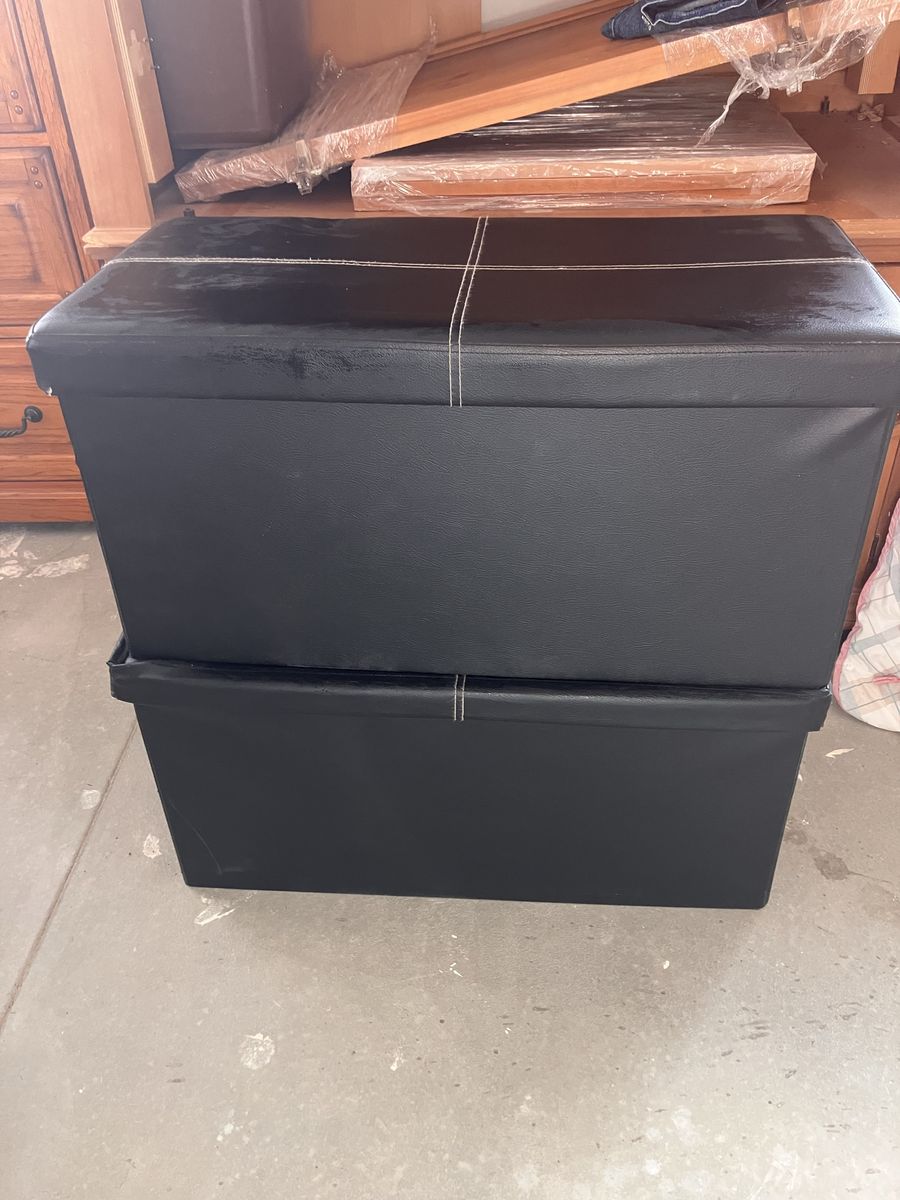 VenmoThese are dark brown. They actually break down flat if needed, but sturdy enough to sit on. They’ve been toy boxes, storage for my material, books, etc. so they are well used but still sturdy.