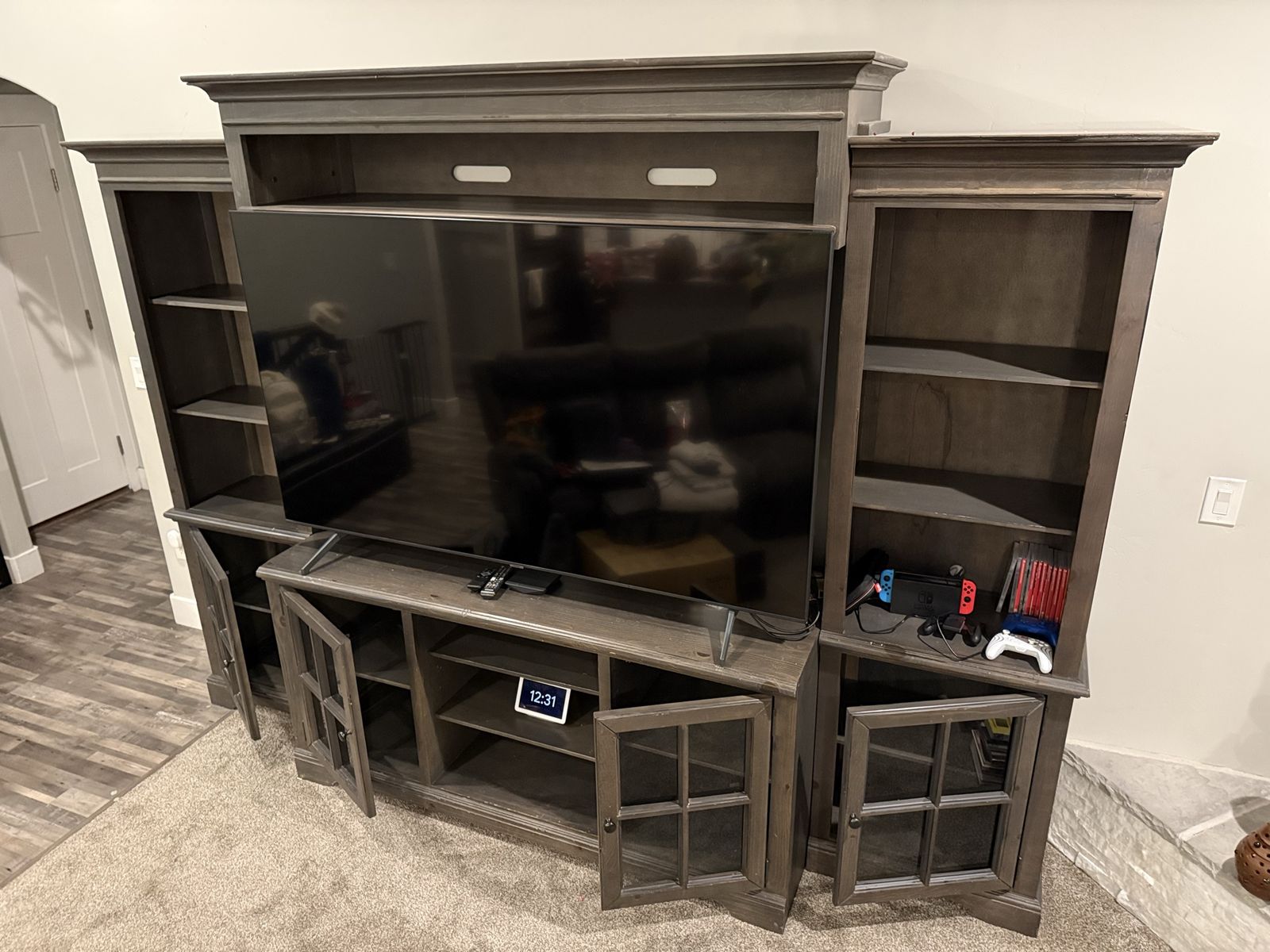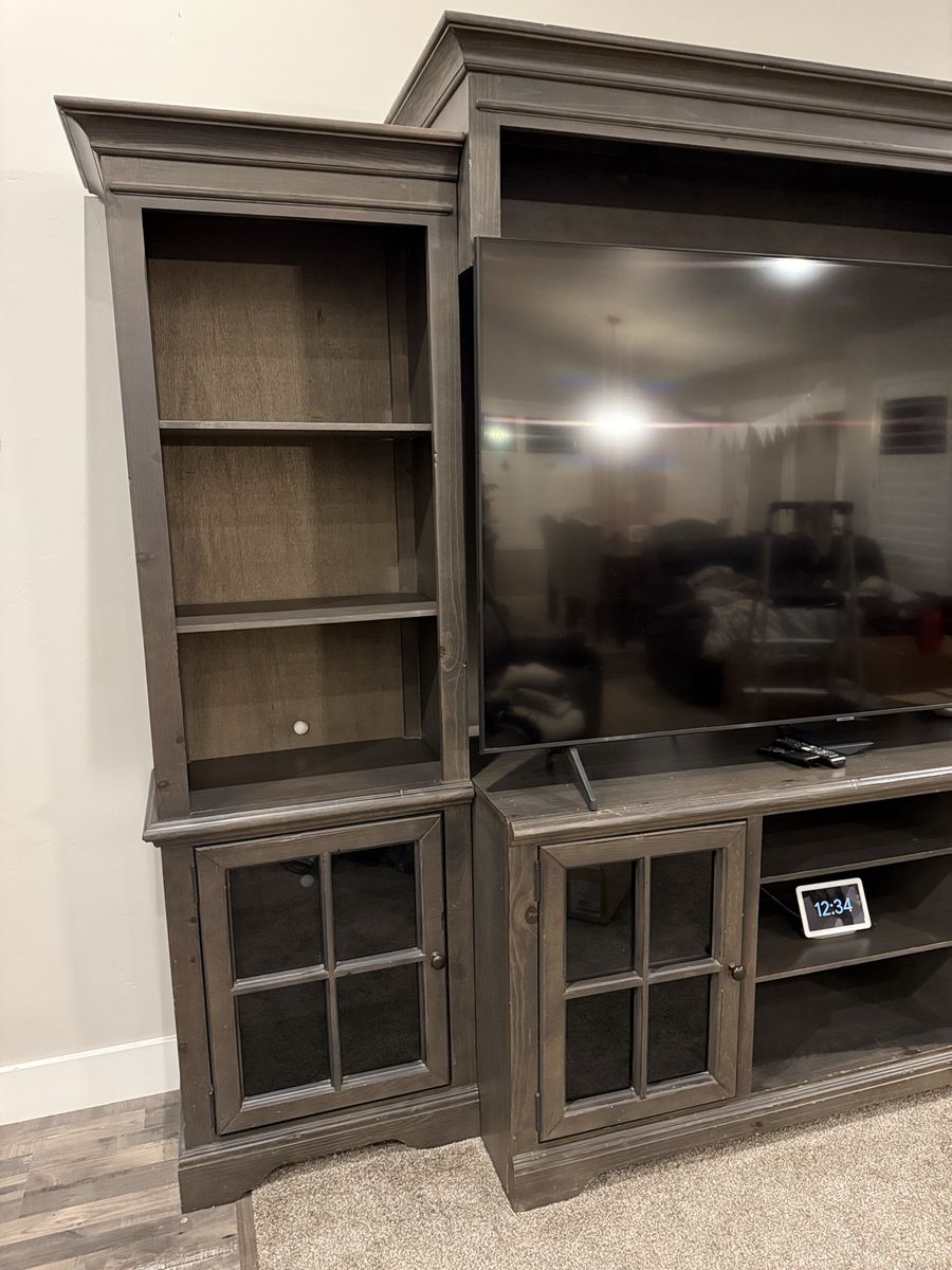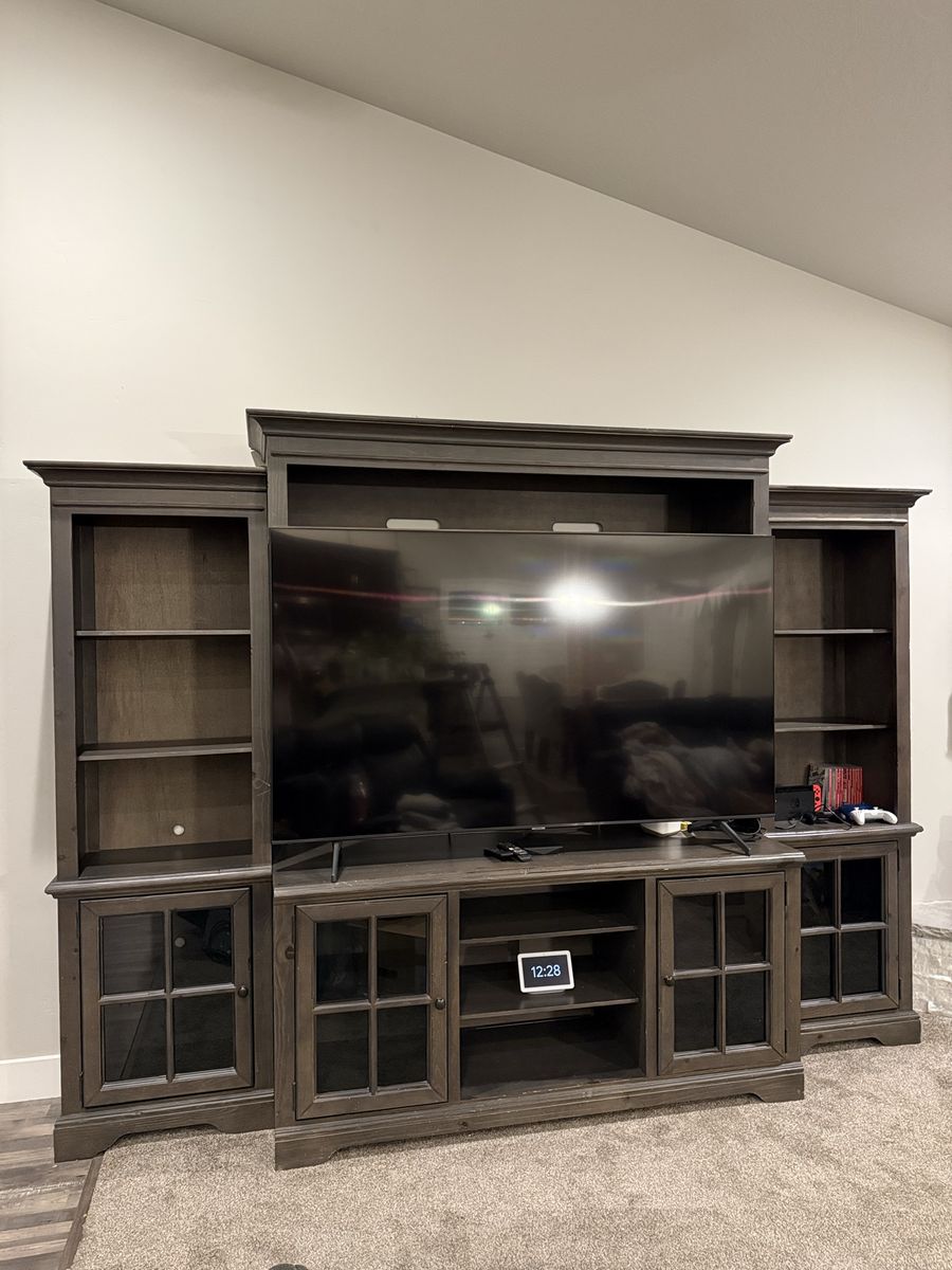 VenmoI am upgrading my front room and ready to let go of this beautiful piece of furniture that I bought from RC Willey 4 years ago. My TV is 75” and it’s too big for this entertainment system. A 65-inch TV is a perfect size for this furniture. I included the measurements in the uploaded photos. Please let me know if you would like to see it in person. Thanks!