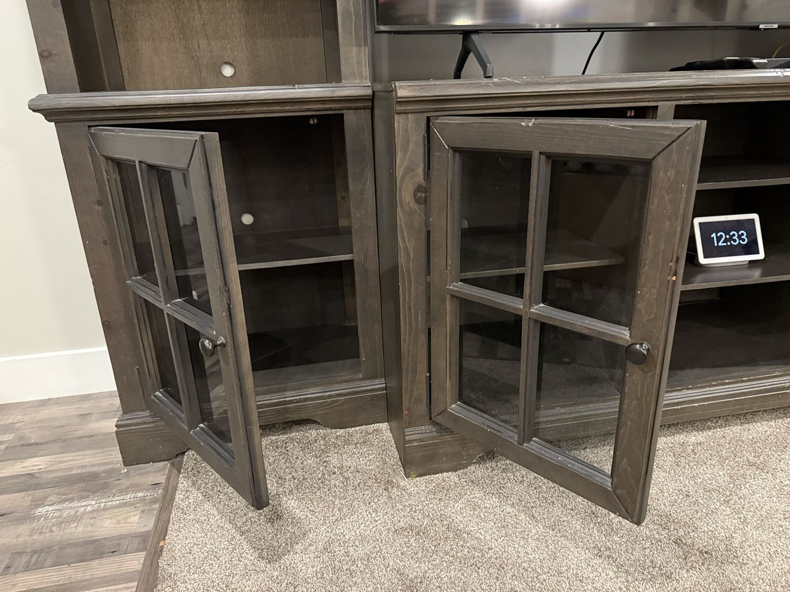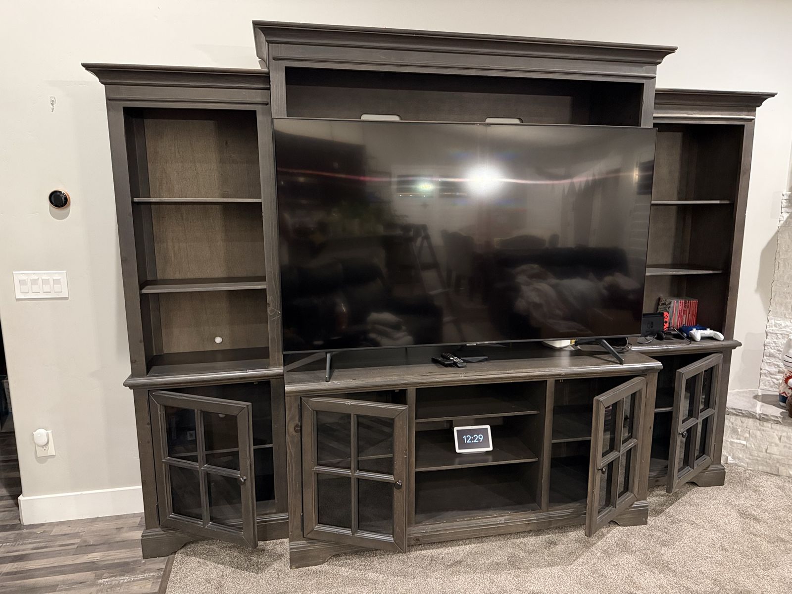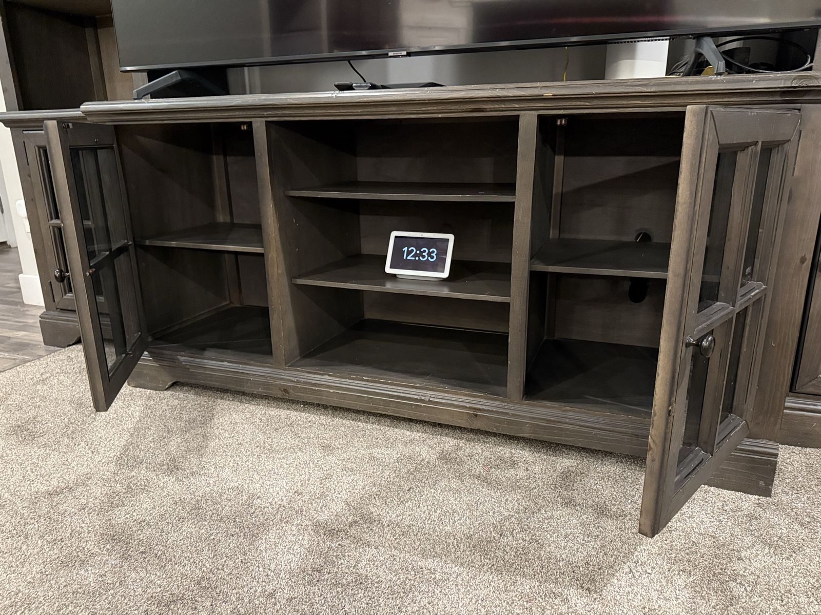 VenmoI am upgrading my front room and ready to let go of this beautiful piece of furniture that I bought from RC Willey 4 years ago. My TV is 75” and it’s too big for this entertainment system. A 65-inch TV is a perfect size for this furniture. I included the measurements in the uploaded photos. Please let me know if you would like to see it in person. Thanks!