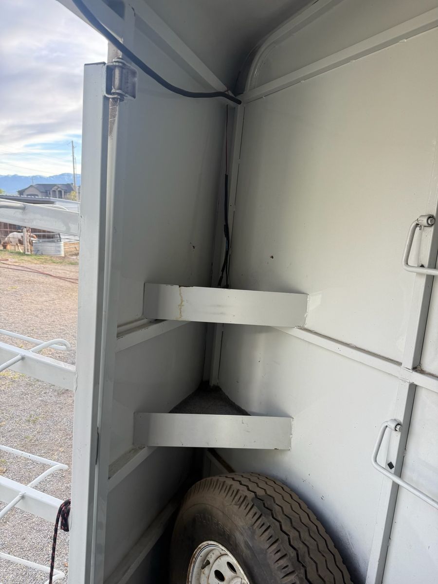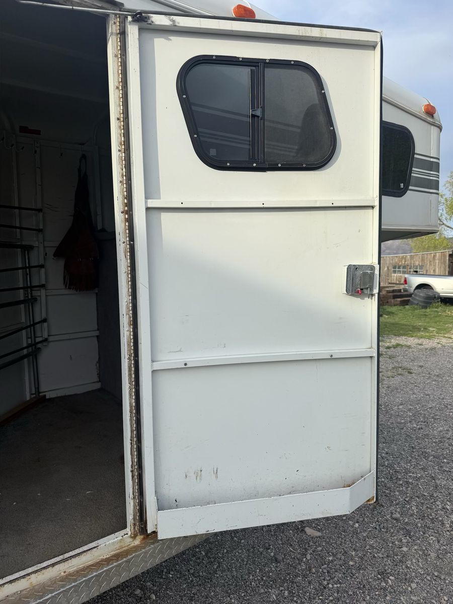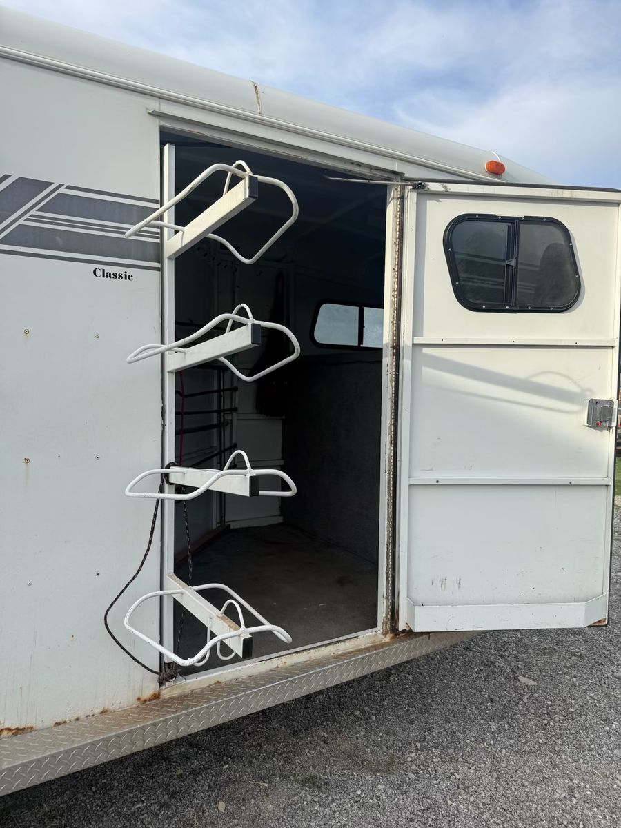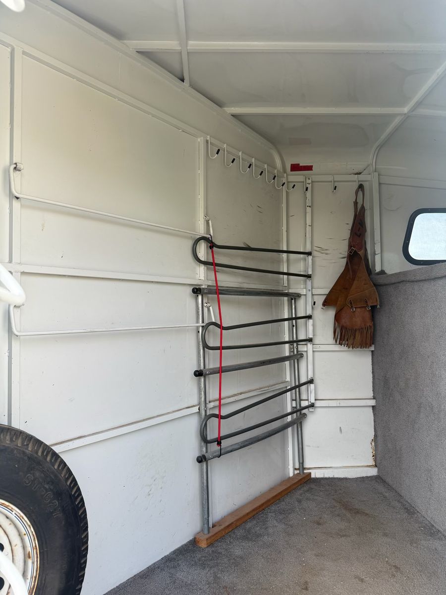 Selling this trailer that’s in really good shape for the year. Good floor. Carpet in the front tack is in good condition. Swing out saddle rack. Plenty of hooks. Bearings packed recently. Tires still have a lot of life. Everything works. Tows like a dream.