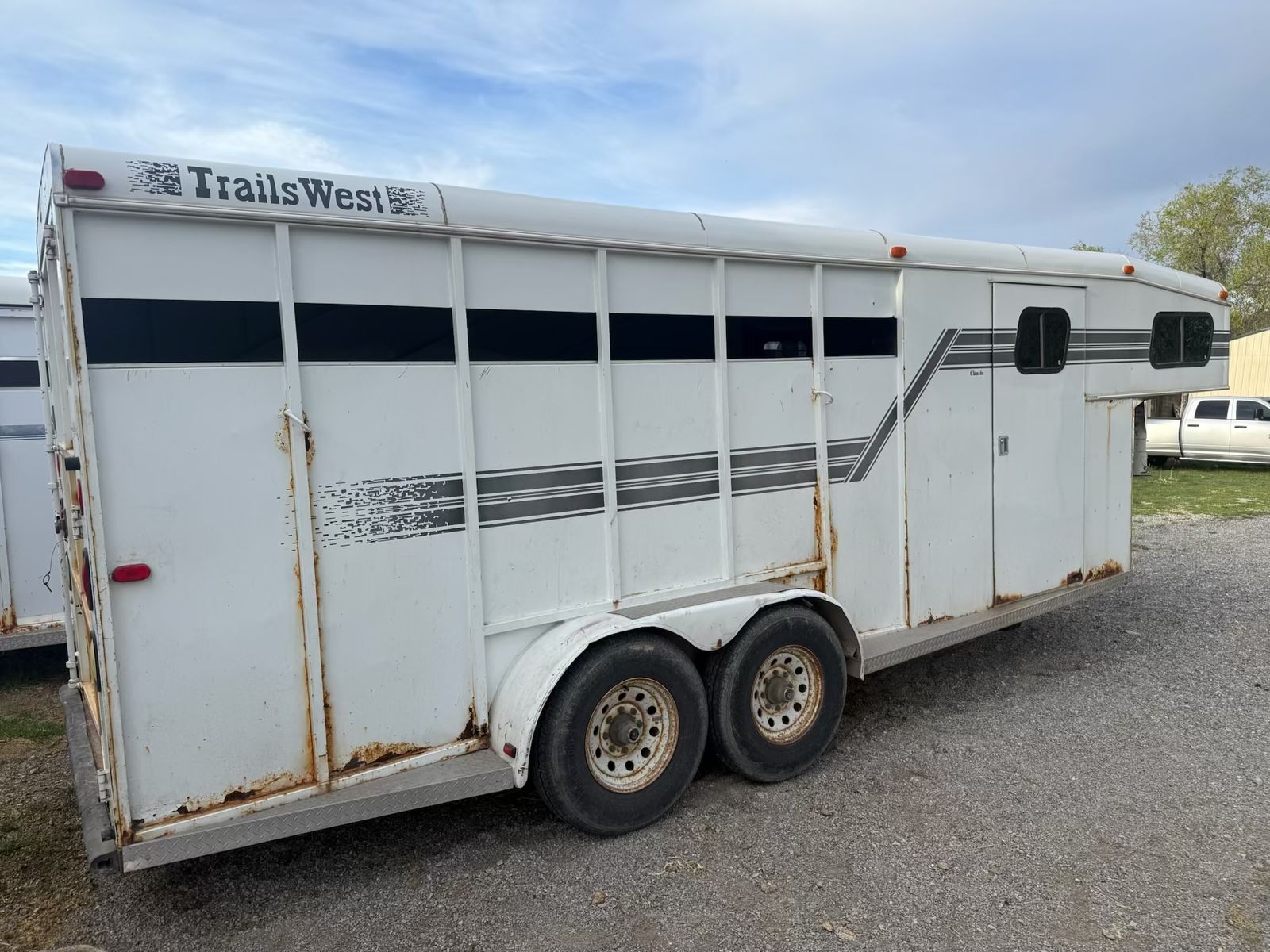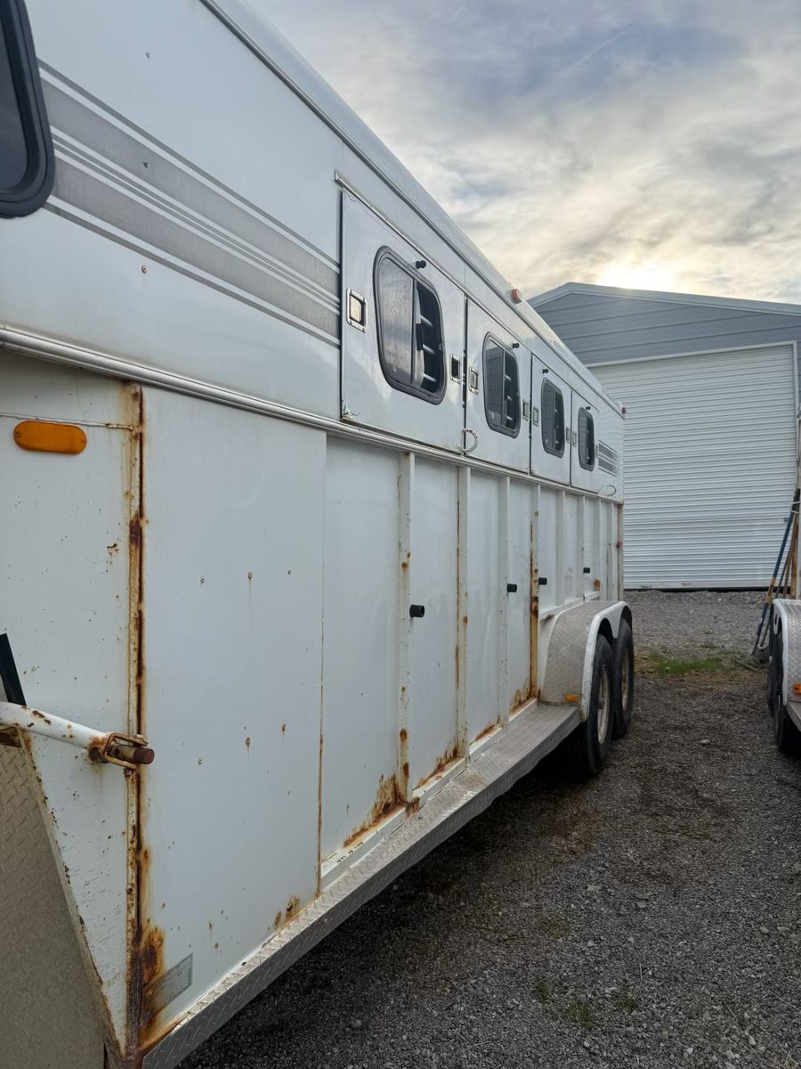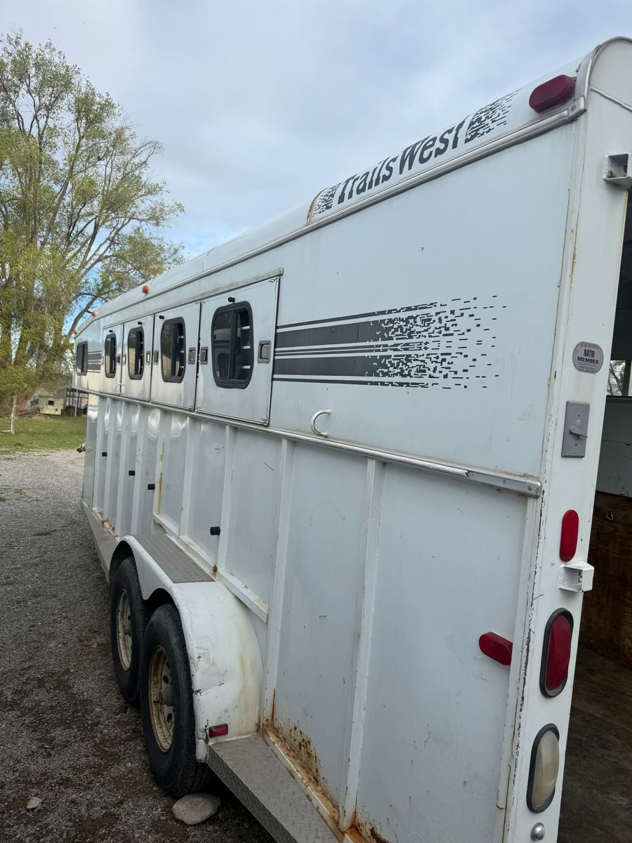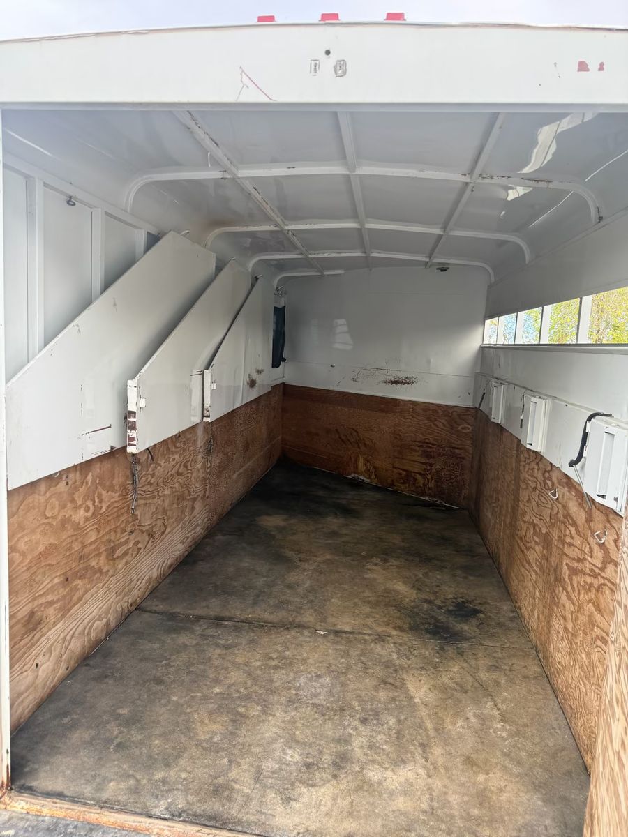 Selling this trailer that’s in really good shape for the year. Good floor. Carpet in the front tack is in good condition. Swing out saddle rack. Plenty of hooks. Bearings packed recently. Tires still have a lot of life. Everything works. Tows like a dream.