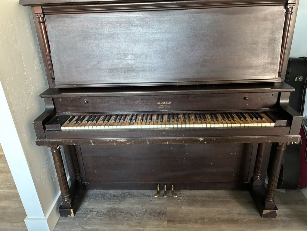 Free piano, circa 1915. Needs to be tuned. It does keep a tune when tuned. Needs keys recovered but they work as is.
