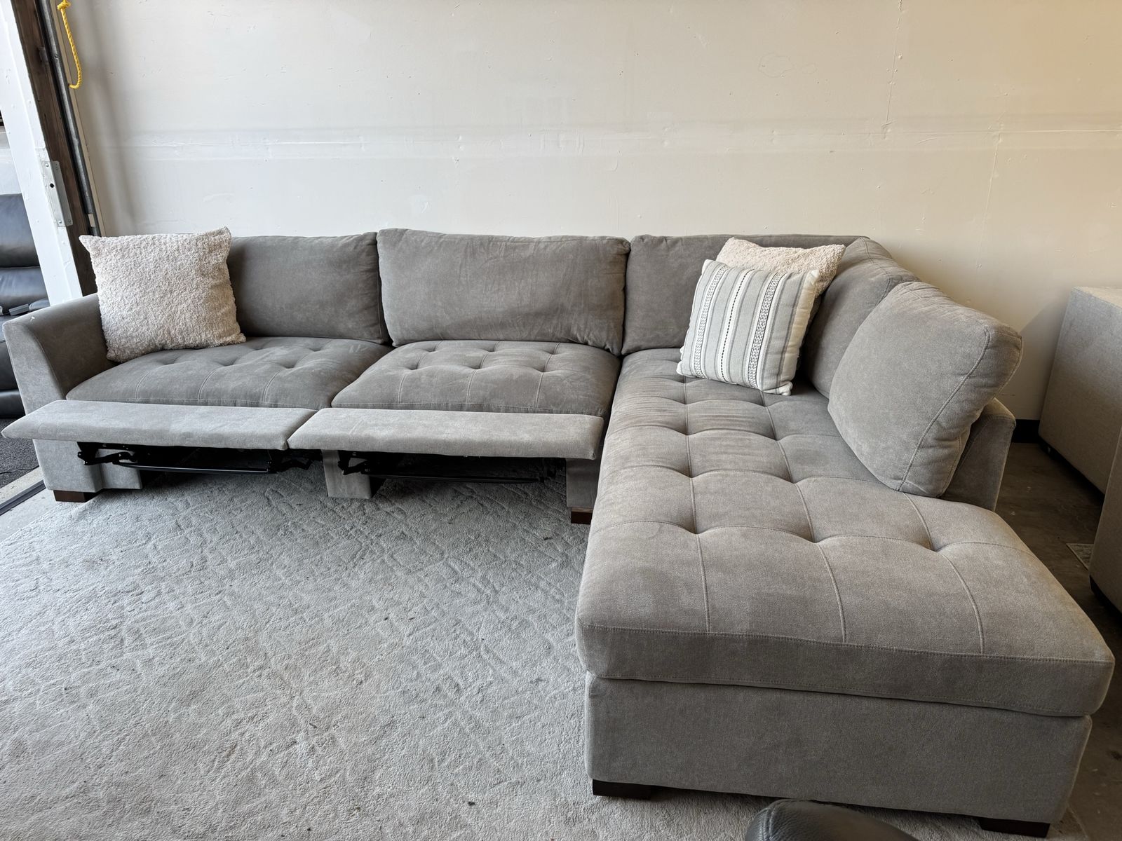 I am selling a gray Costco Thomasville Miles Fabric Sectional sofa couch with Power Footrest in good condition!