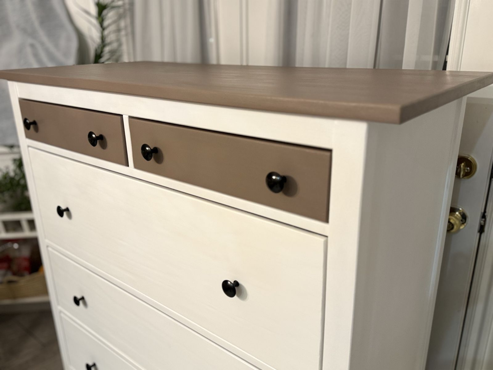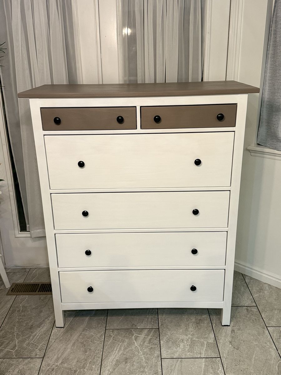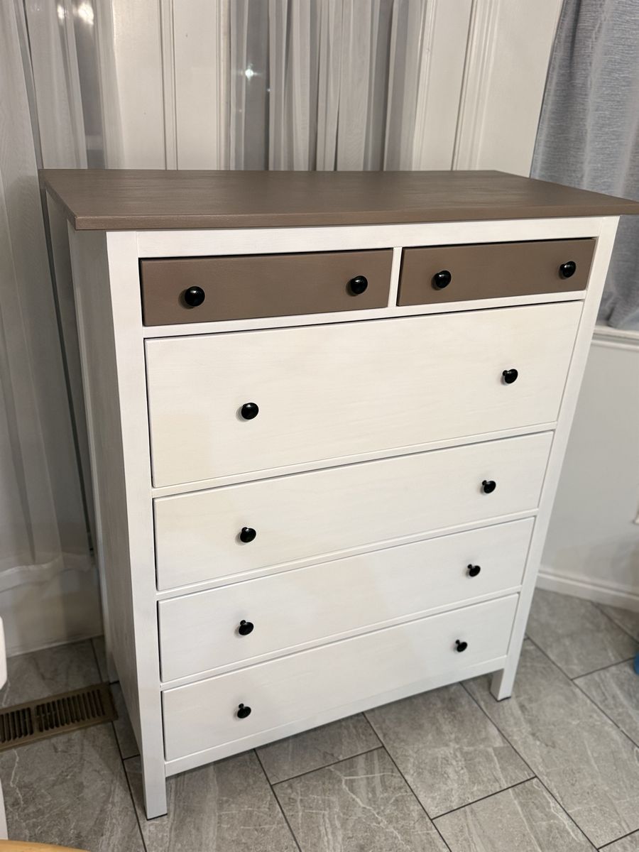 Beautiful condition. No broken parts. No scratches! Added new black protecters on legs. All drawers slide well. Measurements are in a photo I uploaded.
