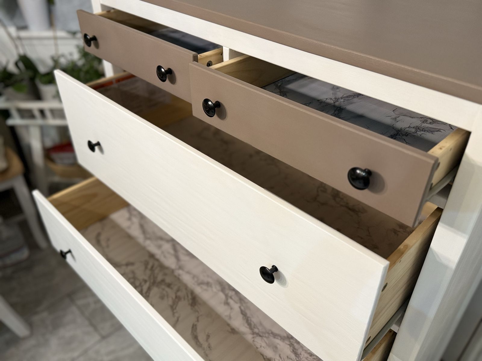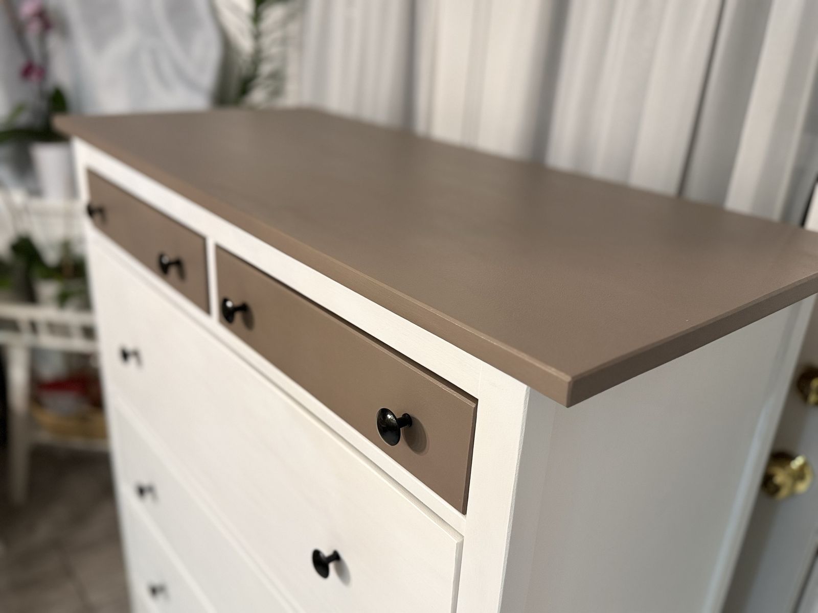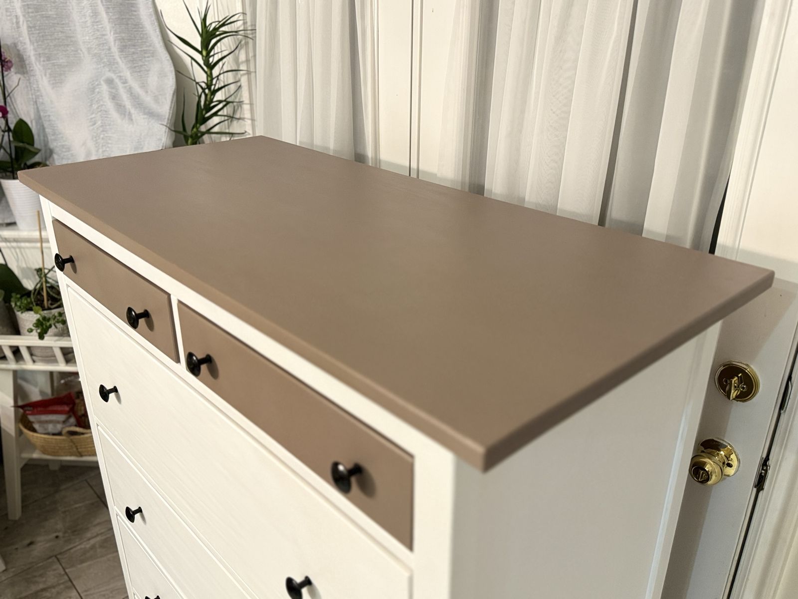 Beautiful condition. No broken parts. No scratches! Added new black protecters on legs. All drawers slide well. Measurements are in a photo I uploaded.