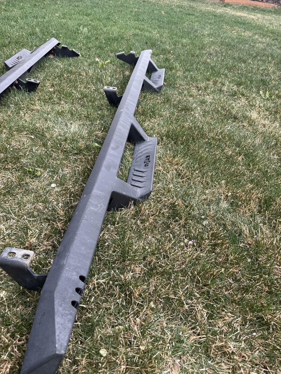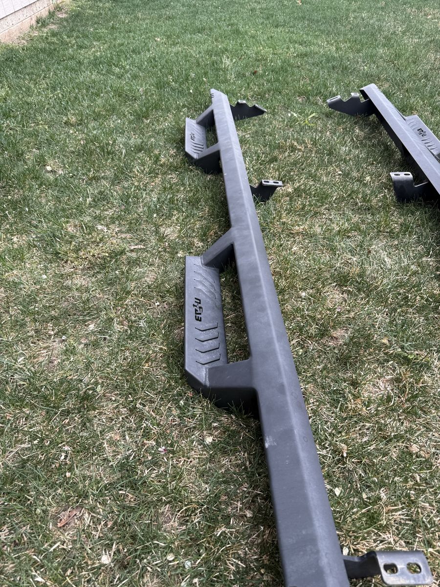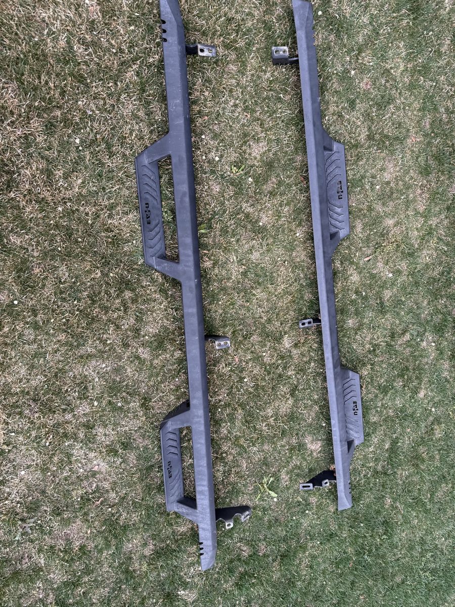 Used set of NFAB steel rock sliders in good condition. Solid construction, built to protect your rig off-road and double as a step. Normal wear from use but no major damage—still very strong and ready to bolt on. • Heavy-duty steel • Great for off-roading + side protection • Bolt-on mounting brackets included • Fits [2016-2023 Toyota Tacoma in]