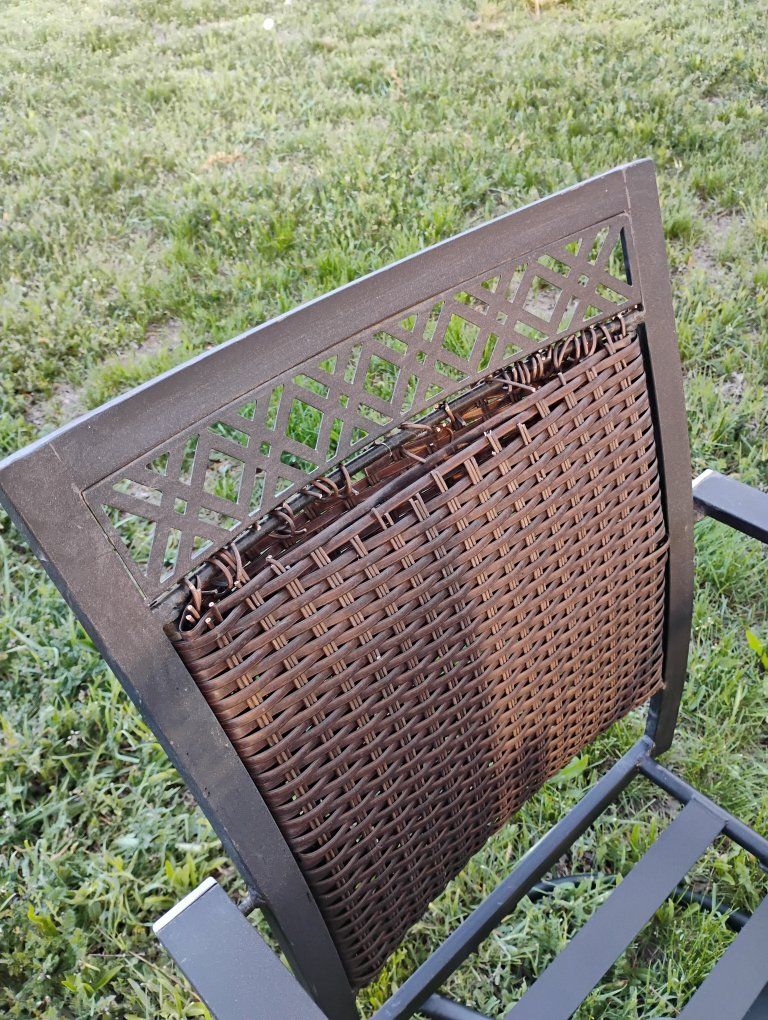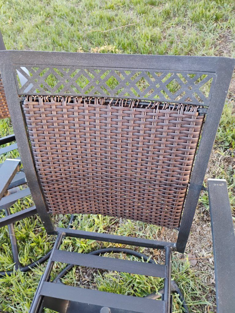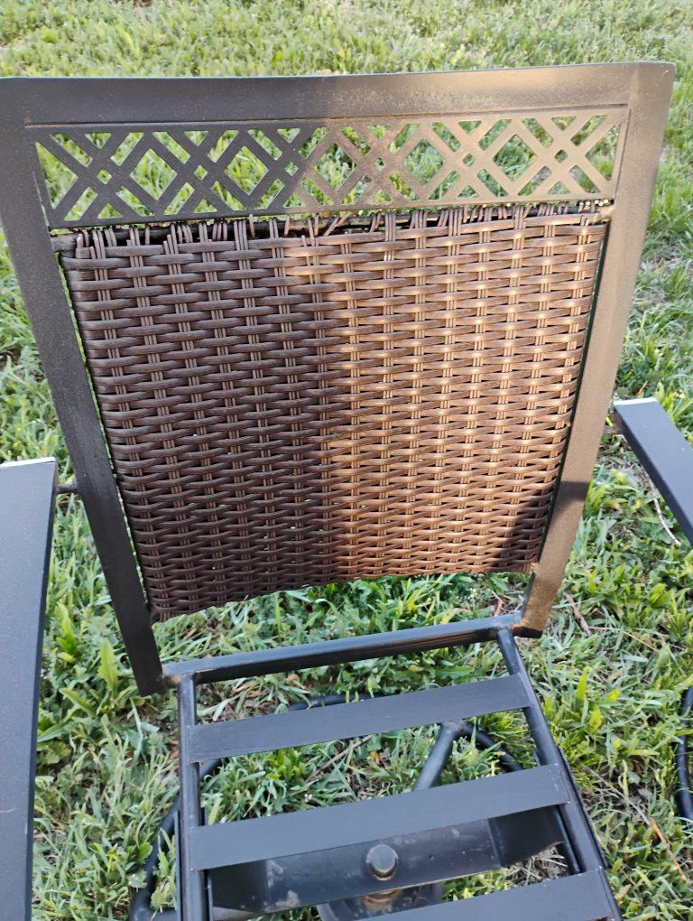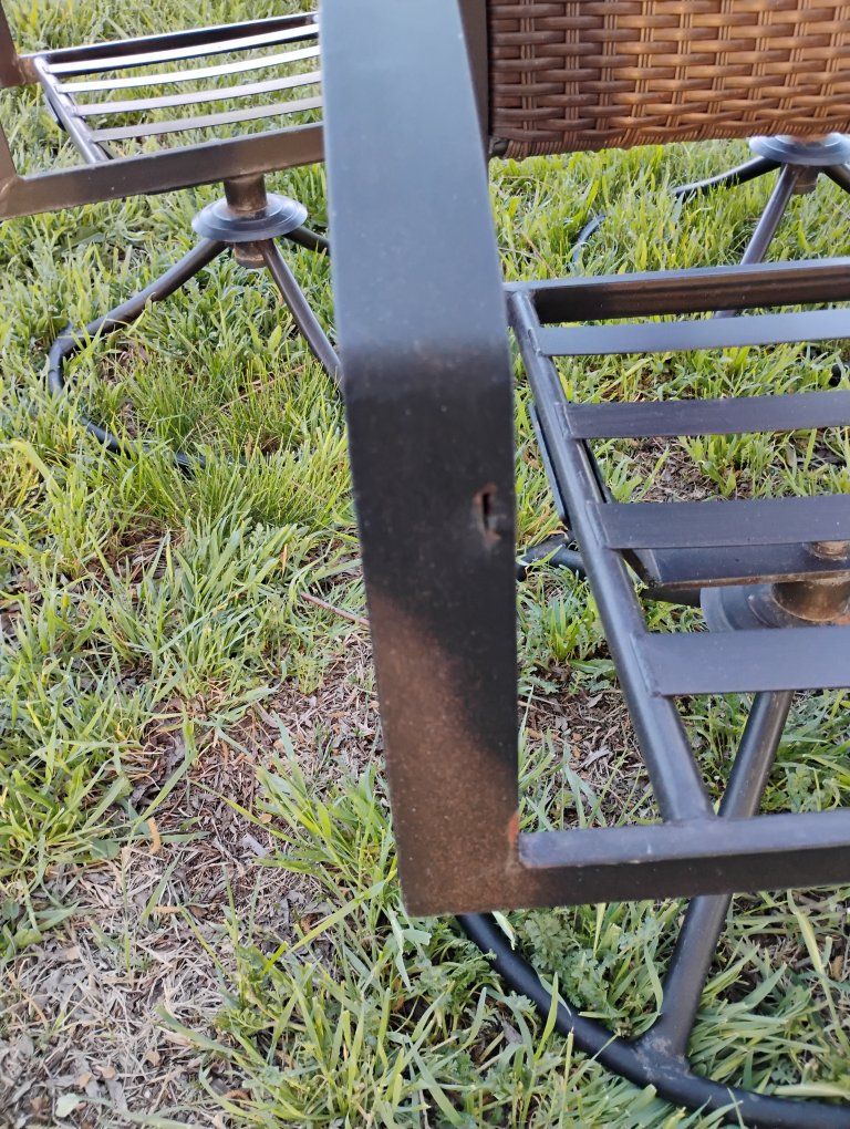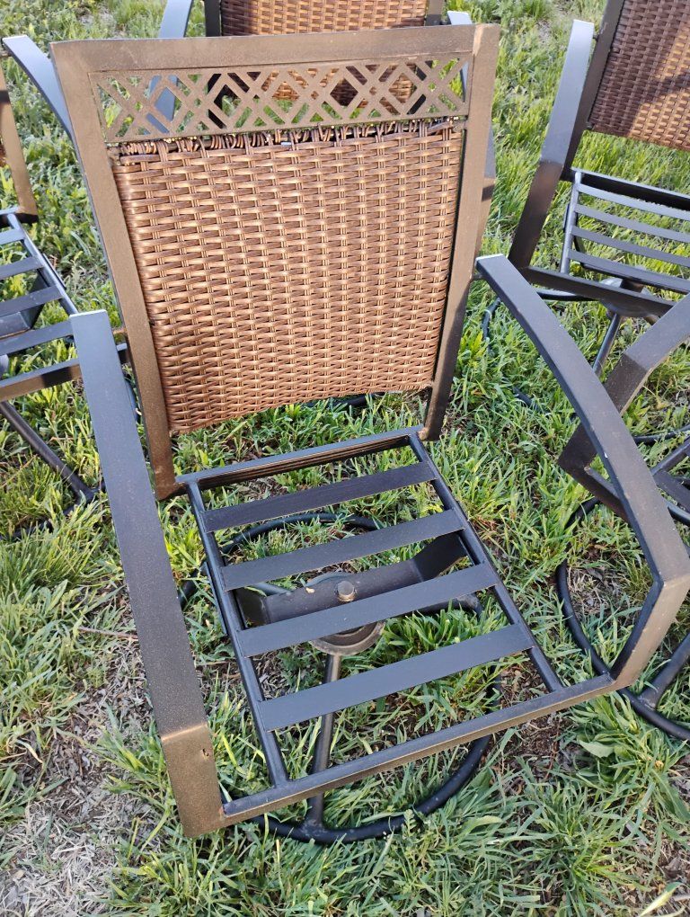 VenmoAll swivel. A couple chairs the top of the back I coming undone. See pics. still works fine. Very solid. Steal straps where the cushions go fits up to a 20x20-in cushion. round base. Priced reasonable. $50 for the Set.