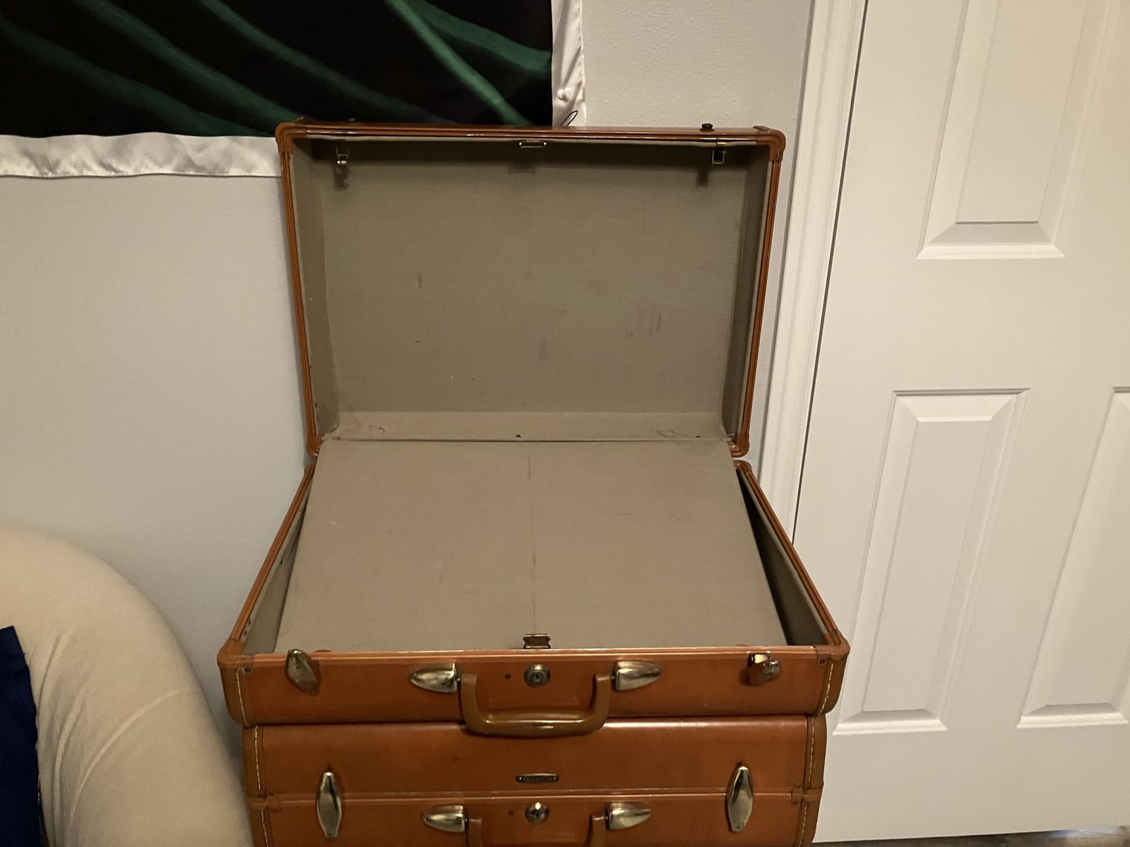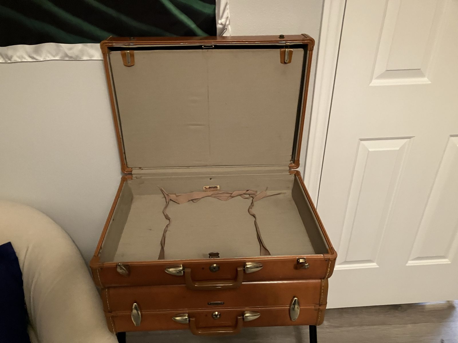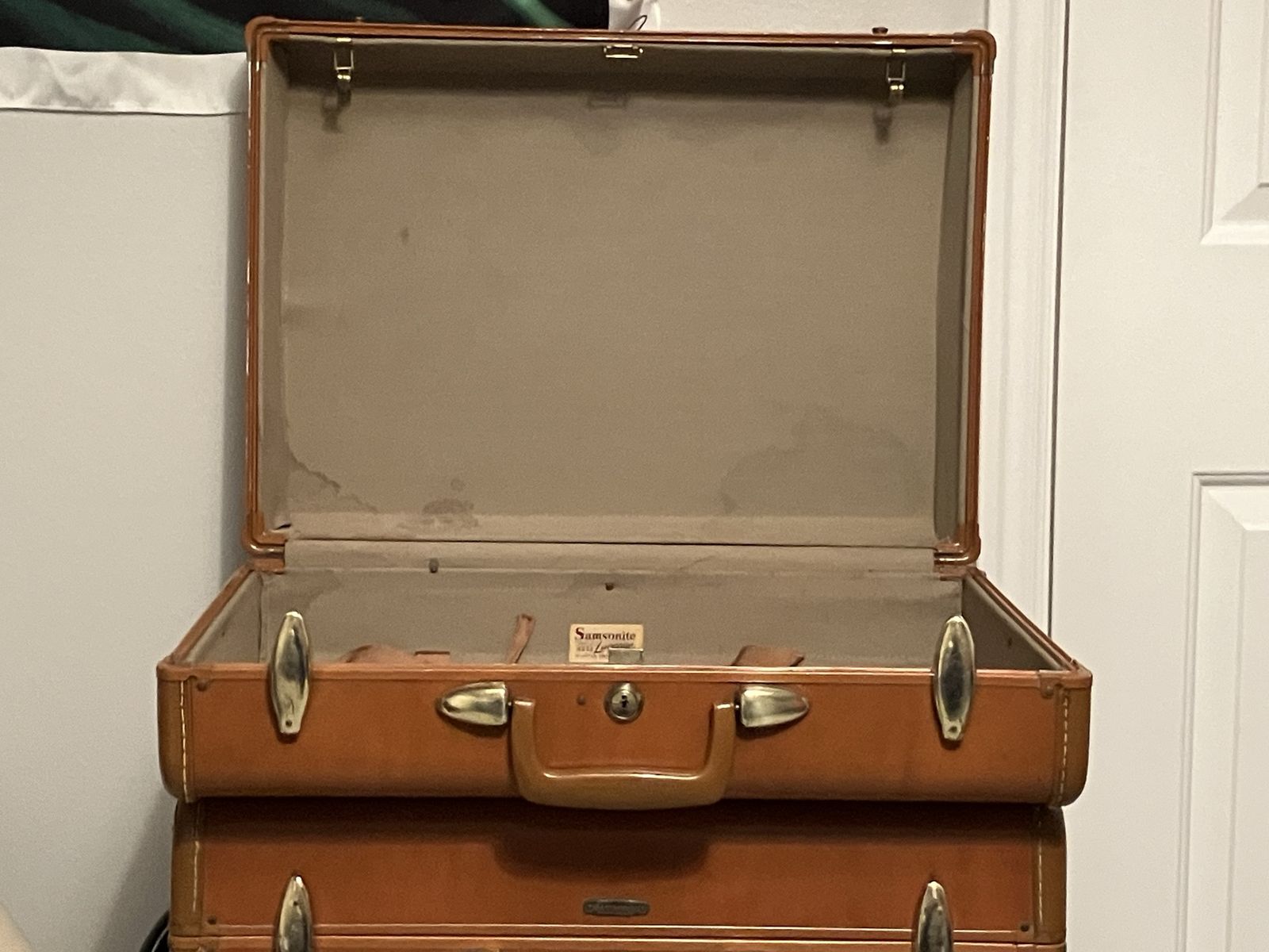Venmo2 vintage Samsonite suitcases. One is missing the divider panel, the other has it. We’ve been using these as decoration and storage, but are changing things up.