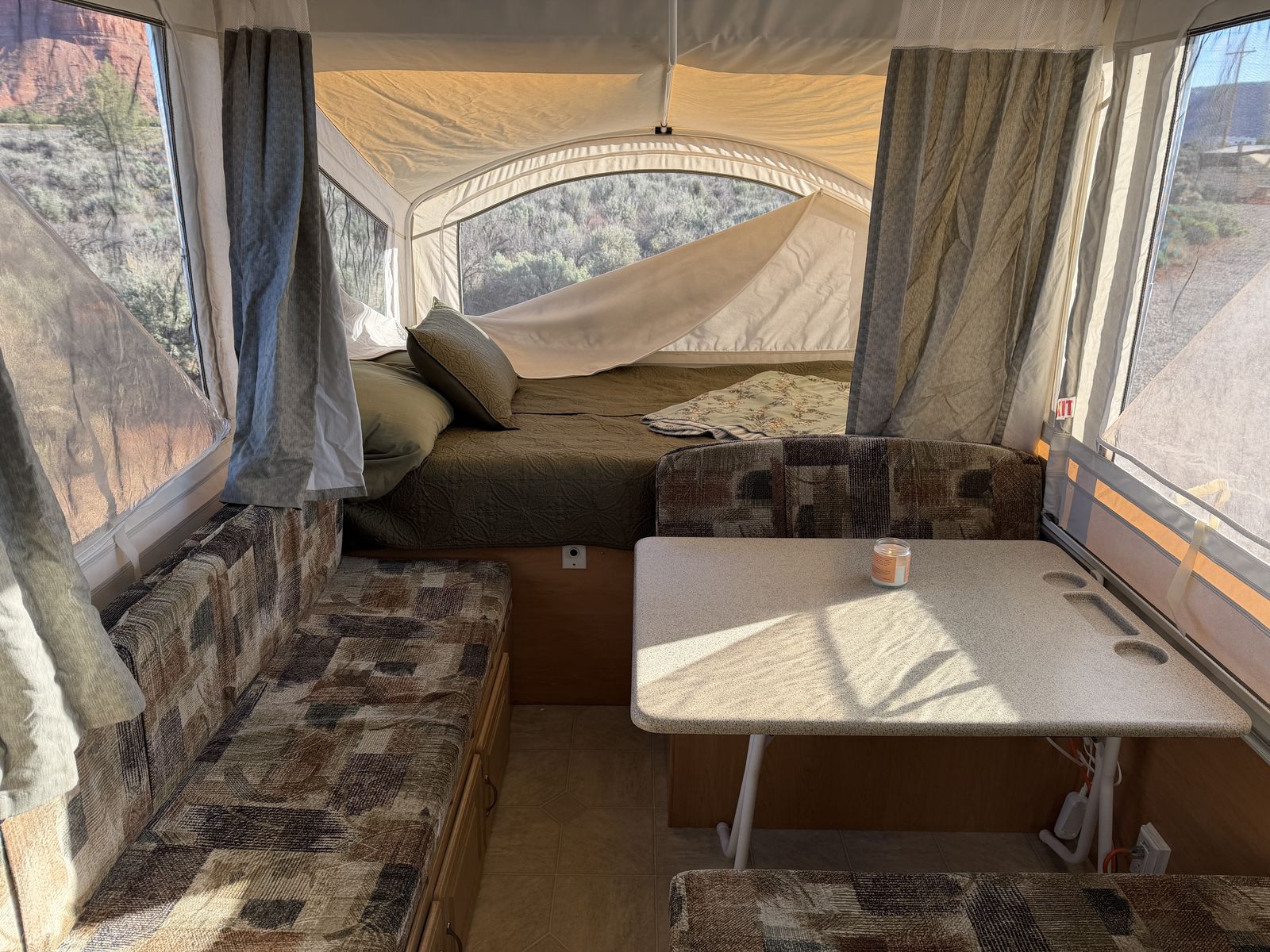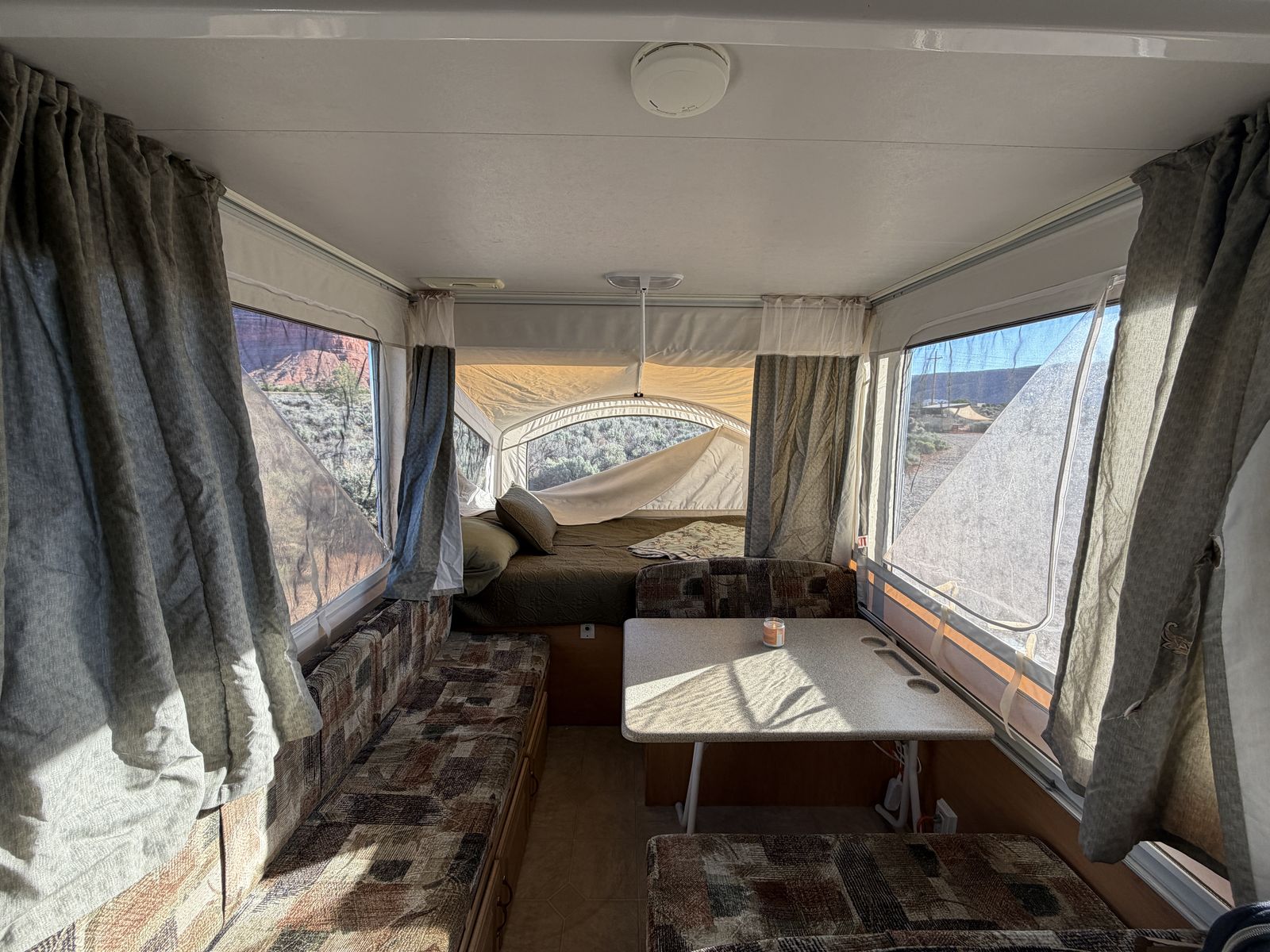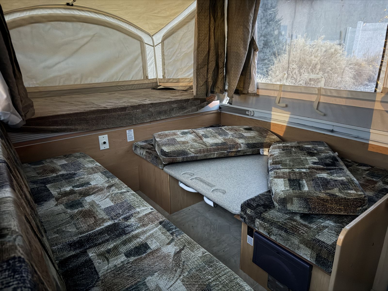 VenmoSleeps 6+. Electrical, Fridge, Gas, Heater, Water, Tires all in great working condition. No tears or stains in any of the fabrics, window coverings, or canopies. All curtains and window panels are in great condition. All screens are in great condition. All zippers and velcro are in great condition. 3rd owner, all previous owners have been non-smoking. We easily tow it with a 2013 Honda Pilot.