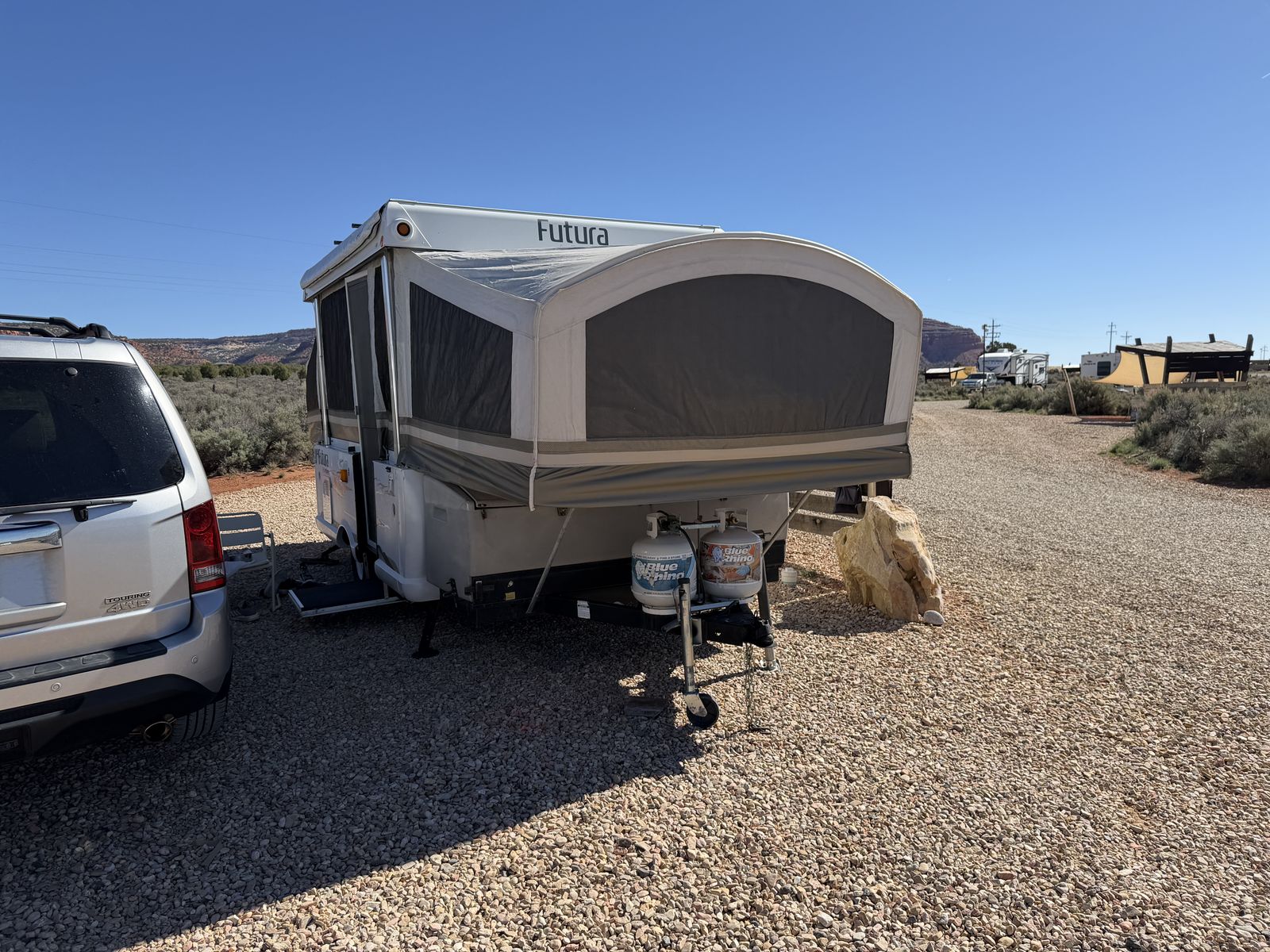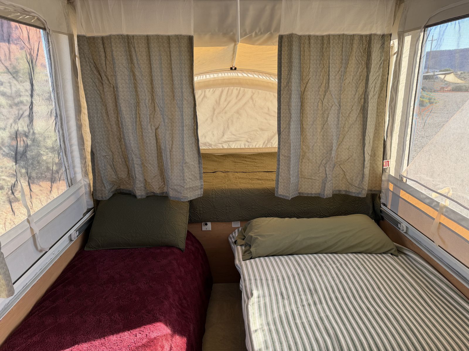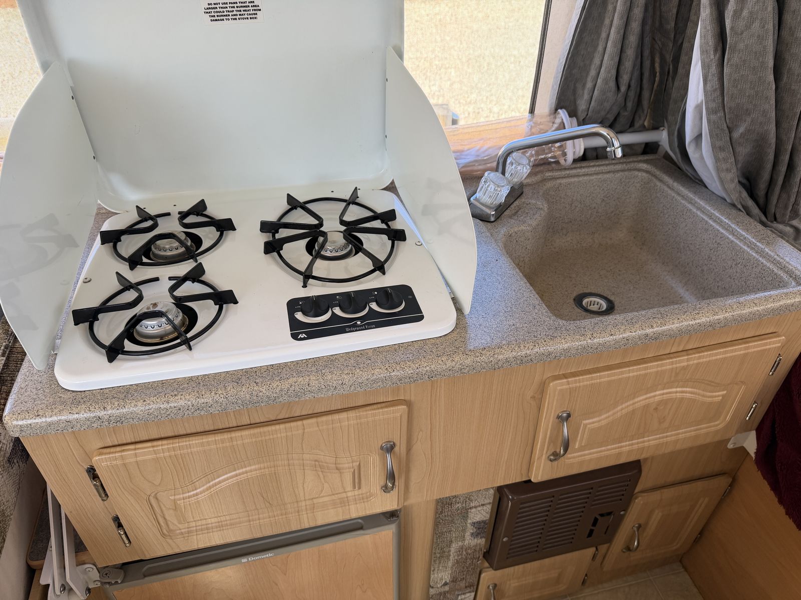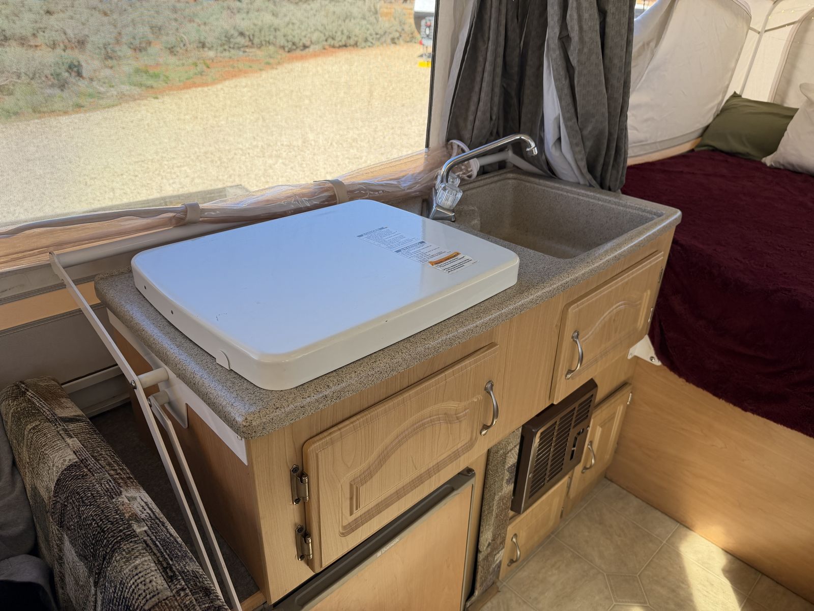 VenmoSleeps 6+. Electrical, Fridge, Gas, Heater, Water, Tires all in great working condition. No tears or stains in any of the fabrics, window coverings, or canopies. All curtains and window panels are in great condition. All screens are in great condition. All zippers and velcro are in great condition. 3rd owner, all previous owners have been non-smoking. We easily tow it with a 2013 Honda Pilot.