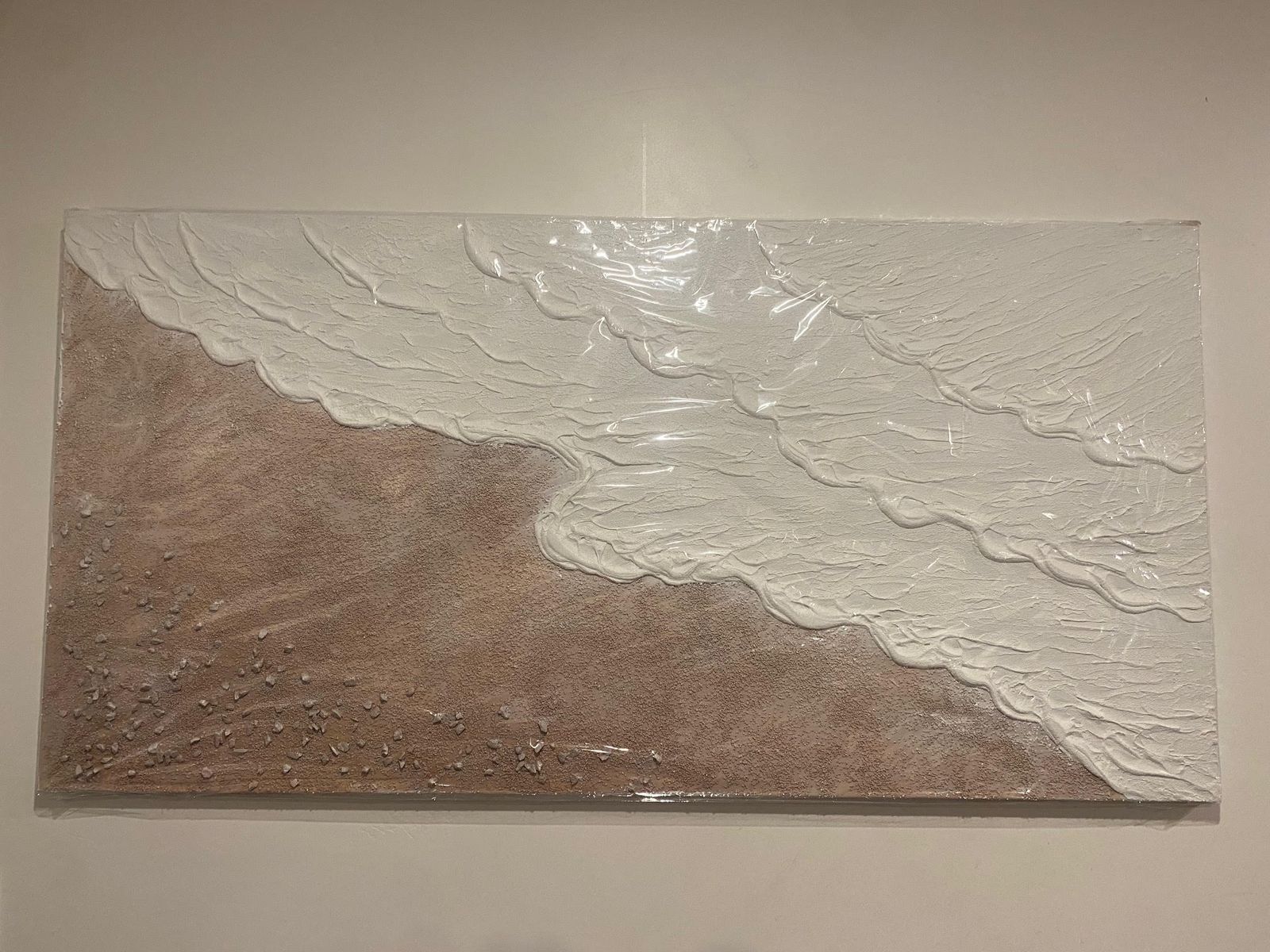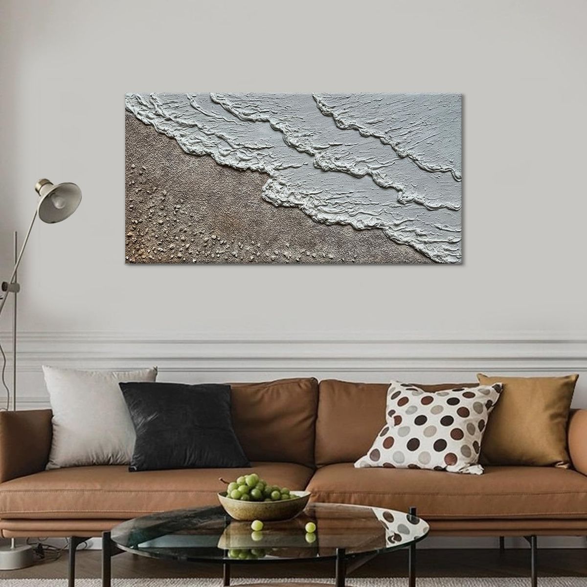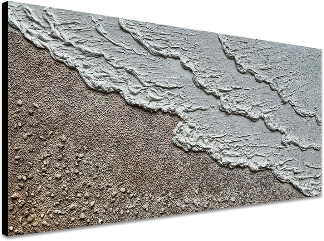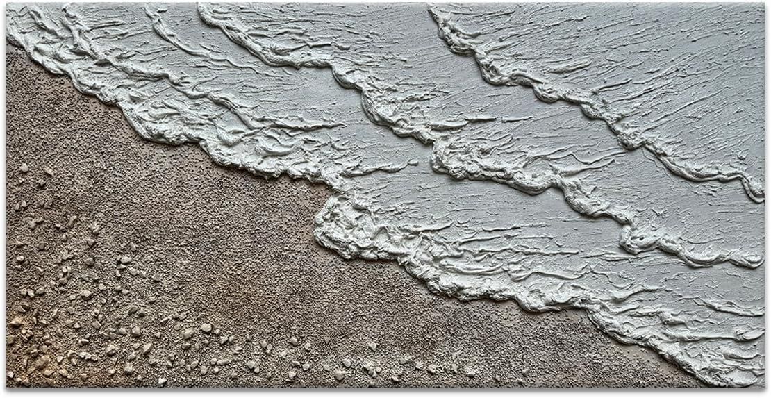 ApplePay29x58 Inches Huge Oil Painting Hand-Painted Thick Texture Wave Beach Minimalist Modern Abstract Canvas Art Warm Acrylic Painting Home Office Wall Decoration