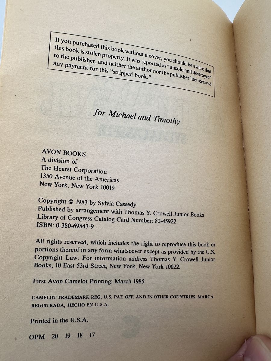 ApplePayVintage 1985 Avon Camelot paperback of Behind the Attic Wall by Sylvia Cassedy. A beloved middle-grade fantasy about a troubled girl who discovers a mysterious world behind her relatives’ attic wall. Award-winning children’s novel blending magic, mystery, and emotional depth. Shows visible wear but remains a complete and readable copy.