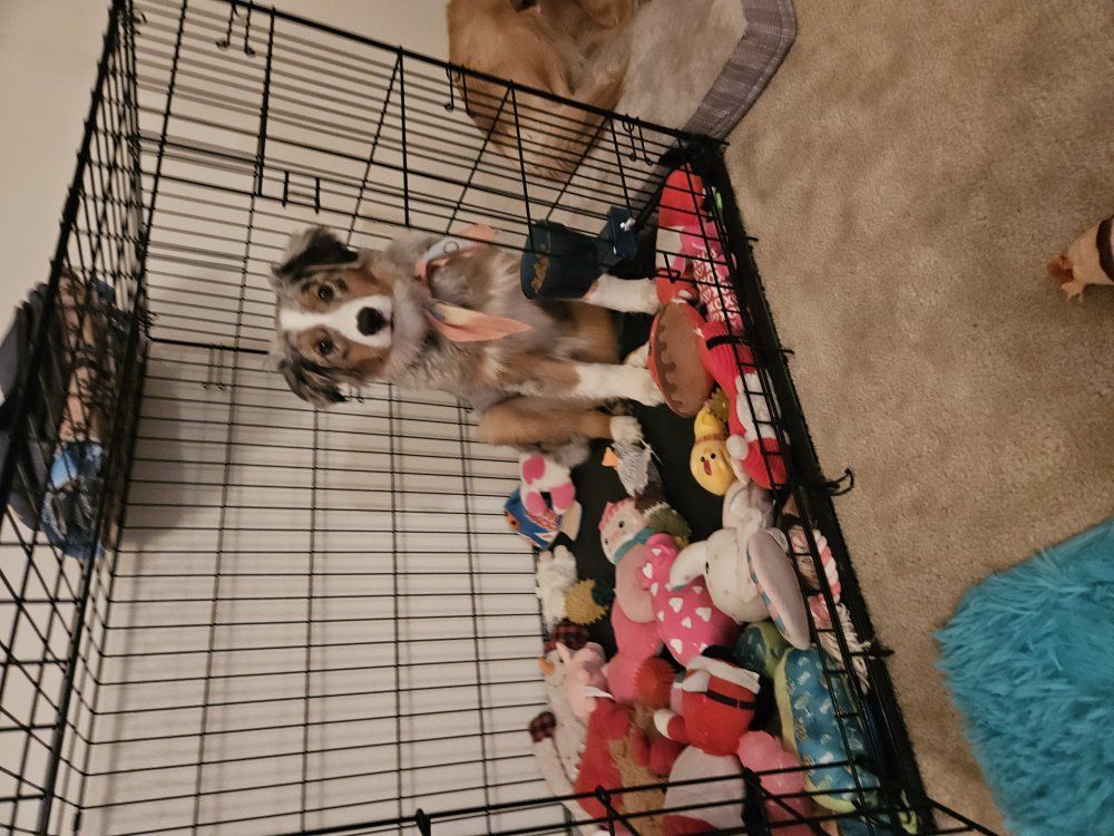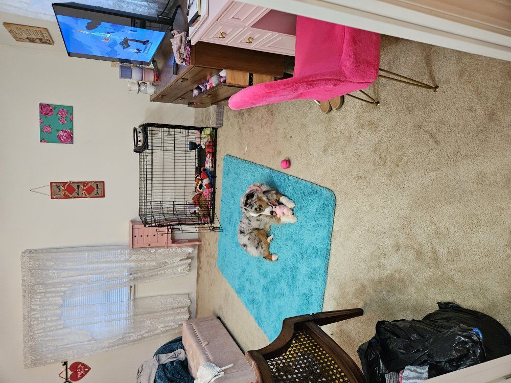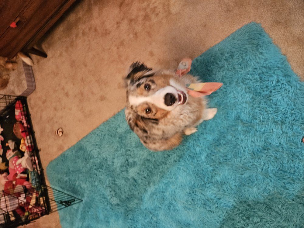 PayPalHolly is a delight! She's a pure bred fluffy mini aussie. won't get much bigger, just wider. we met her mother. Such a sweet pup with a great start! she's crate trained and will come with her crate and tons of toys! she does great with other dogs at the dog park and was recently dewormed. She does not nip at heels but she does show herding potential as she chases my golden retriever border collie around the yard and bites her tail the whole time. good with kids and cats. she does well off leash and on leash. and at the dog park! she does have breeding rights if you choose. she is a gorgeous blue Merle color with tan markings. we will miss Holly we got her the week before Christmas but my life changed drastically and this is for the best for such an active puppy. I do take various forms of electronic payment. and I can meet up somewhere partway. I'm in South St. Anthony, southeast Idaho. I'm pretty available!