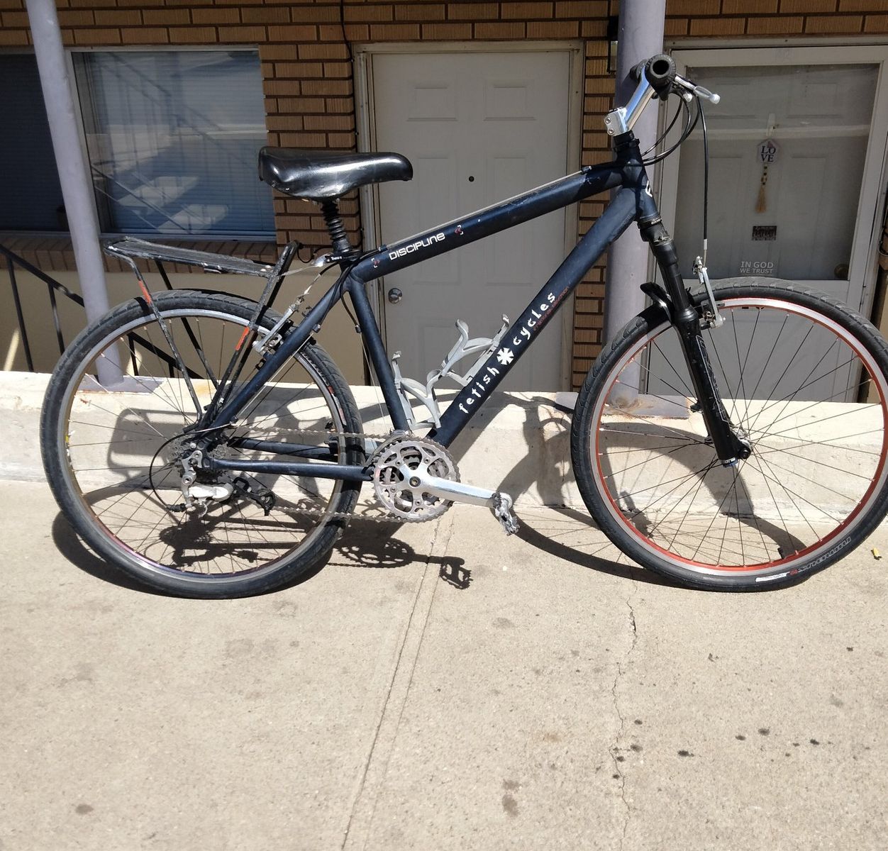 Fetiish Discipline ,cain creek forks,rock shock seat post. caring rack. all alloy components. slightly used well maintained. this is respectable bike.