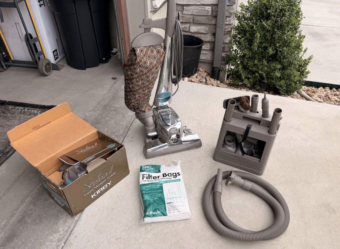 ZellePowerful Kirby upright vacuum in great working condition. This is a heavy-duty machine known for strong suction and deep cleaning—perfect for keeping carpets and upholstery looking like new.