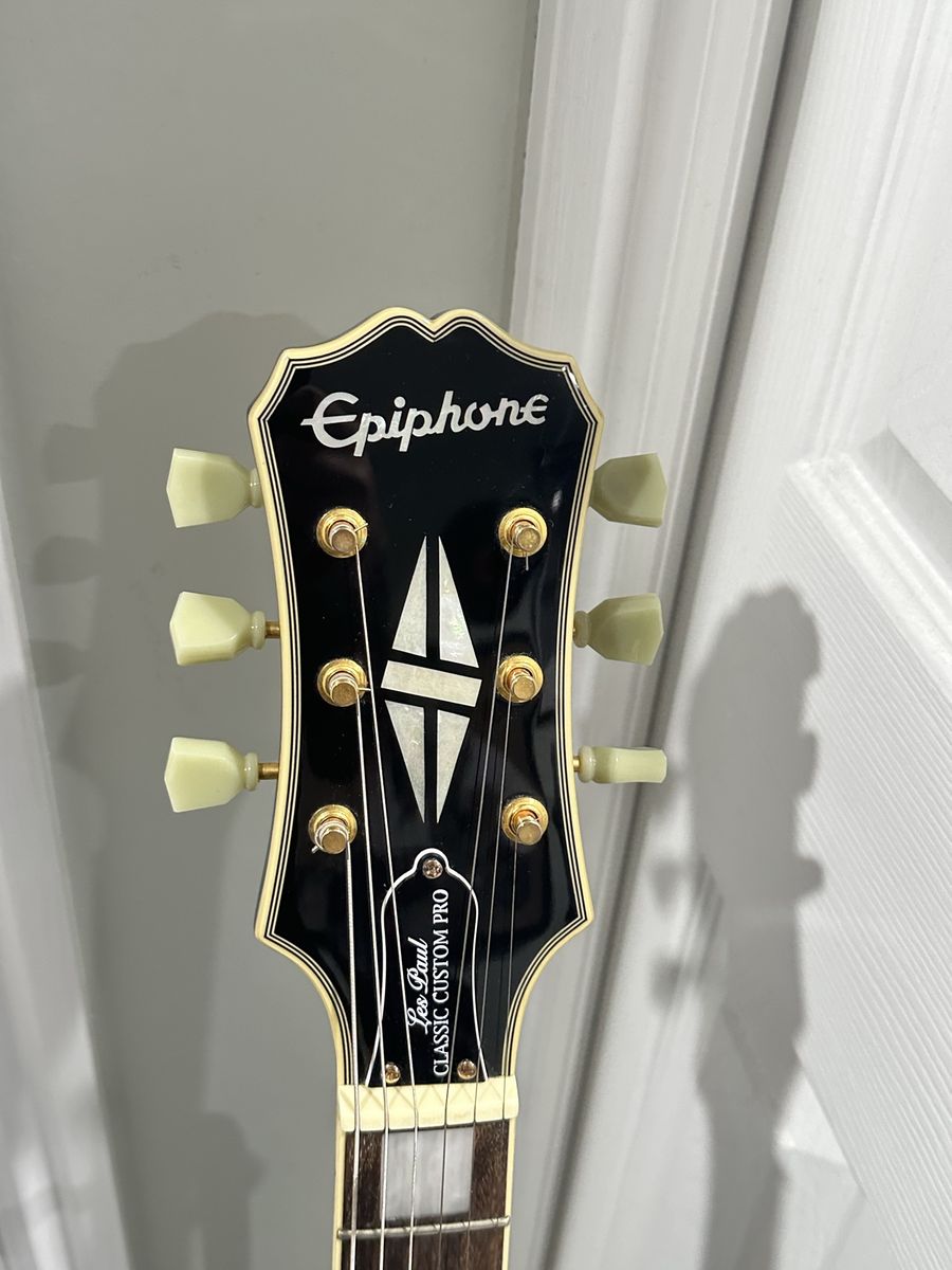 Great playing and sounding Les Paul with upgraded features over standard Epiphones. its the Classic Custom Pro model with ProBucker pickups and coil-splitting for a wide range of tones.