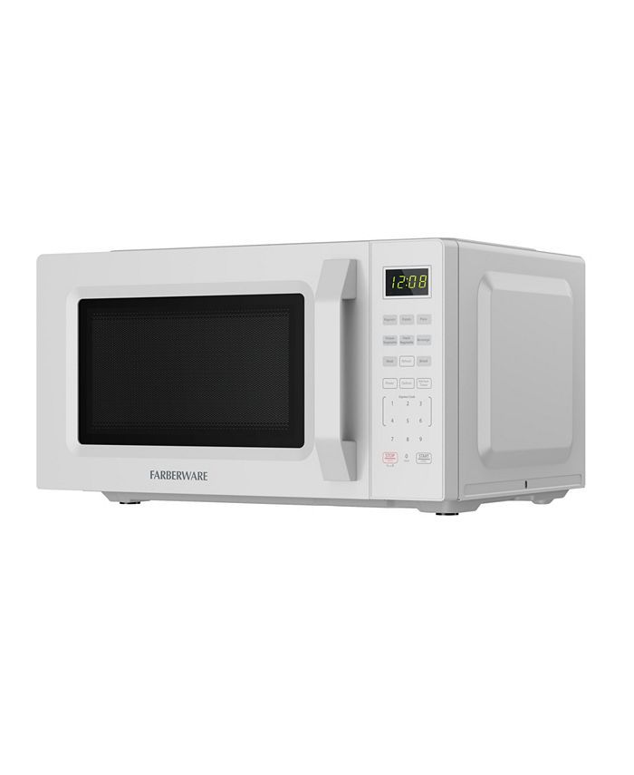 Upgrade your kitchen with this Farberware countertop microwave oven, designed with one-touch cooking functions that deliver quick meals and snacks. A rotating turntable ensures even heating, while the child lock adds peace of mind. Model FMO07WEIBK, FMO07WEIRD, FMO07WEIWH. Approx. dimensions: 13.1" L x 17.71" W x 9.43" H; 29.7 lb. Convenient microwave: Quickly prepare meals, snacks, and leftovers with this 700-watt compact microwave. With simple controls and powerful settings, it's perfect for busy kitchens and small spaces. Customized cooking: Featuring auto cook menus and multiple power levels, this microwave lets you easily reheat, defrost by weight or time, and prepare your favorite foods with precision. Perfect for small spaces: Compact yet spacious, the 0.7 cu. ft. capacity and 9.56" turntable provide ample room for dishes, making it ideal for dorms, apartments, and RVs. User-friendly features: Includes an easy-to-read menu action screen, express cook for fast one-touch operation, and a convenient kitchen timer to keep you on schedule. Metal. Wipe clean. Imported.