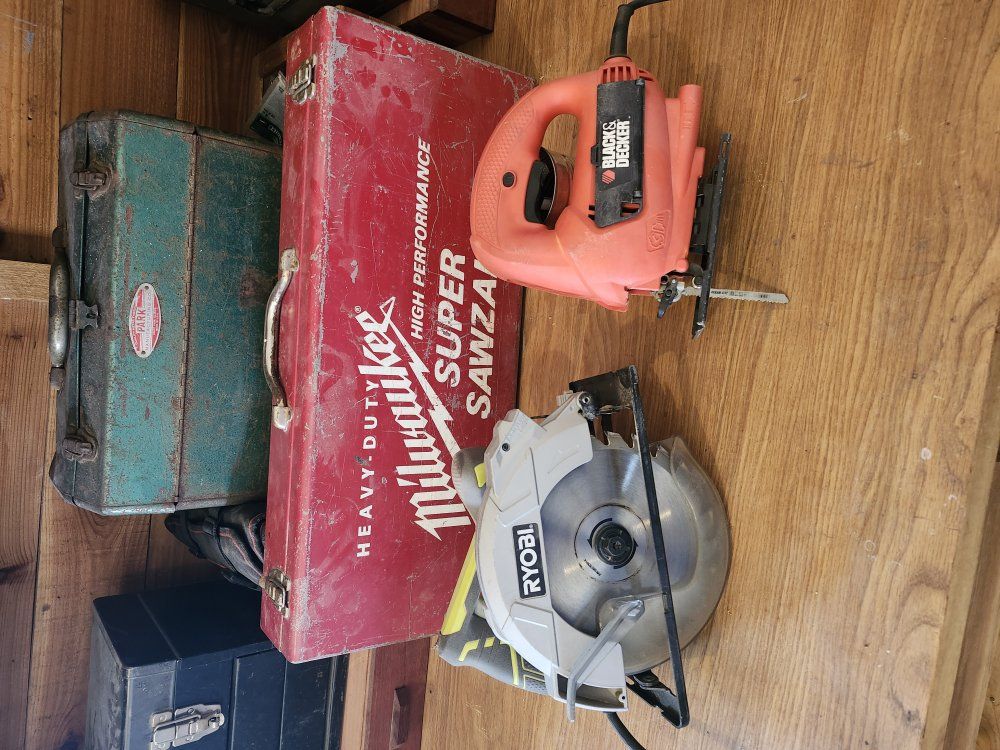 Milwaukee sawzall reciprocating saw with a metal box and blades. circular saw and a jig saw. $50 OBO for everything