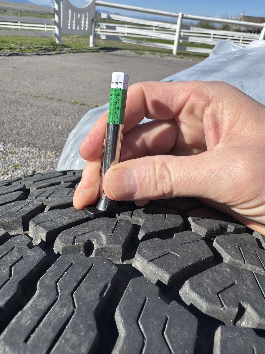 VenmoAlmost brand new tires. The tread depth on new tires is 13/32, three of the tires have a tread depth of 10/32, one has 9/32 tread depth. $600 firm