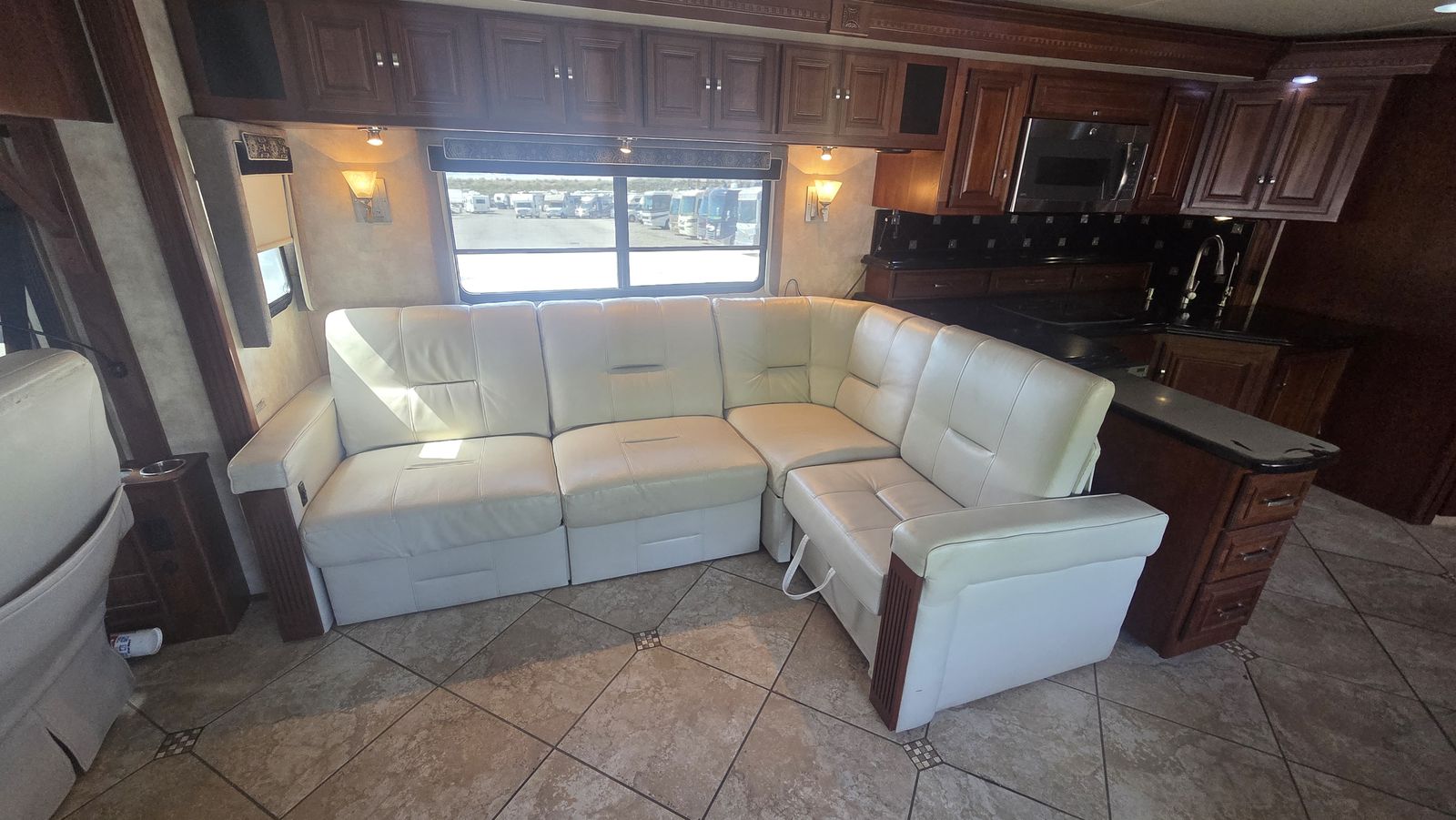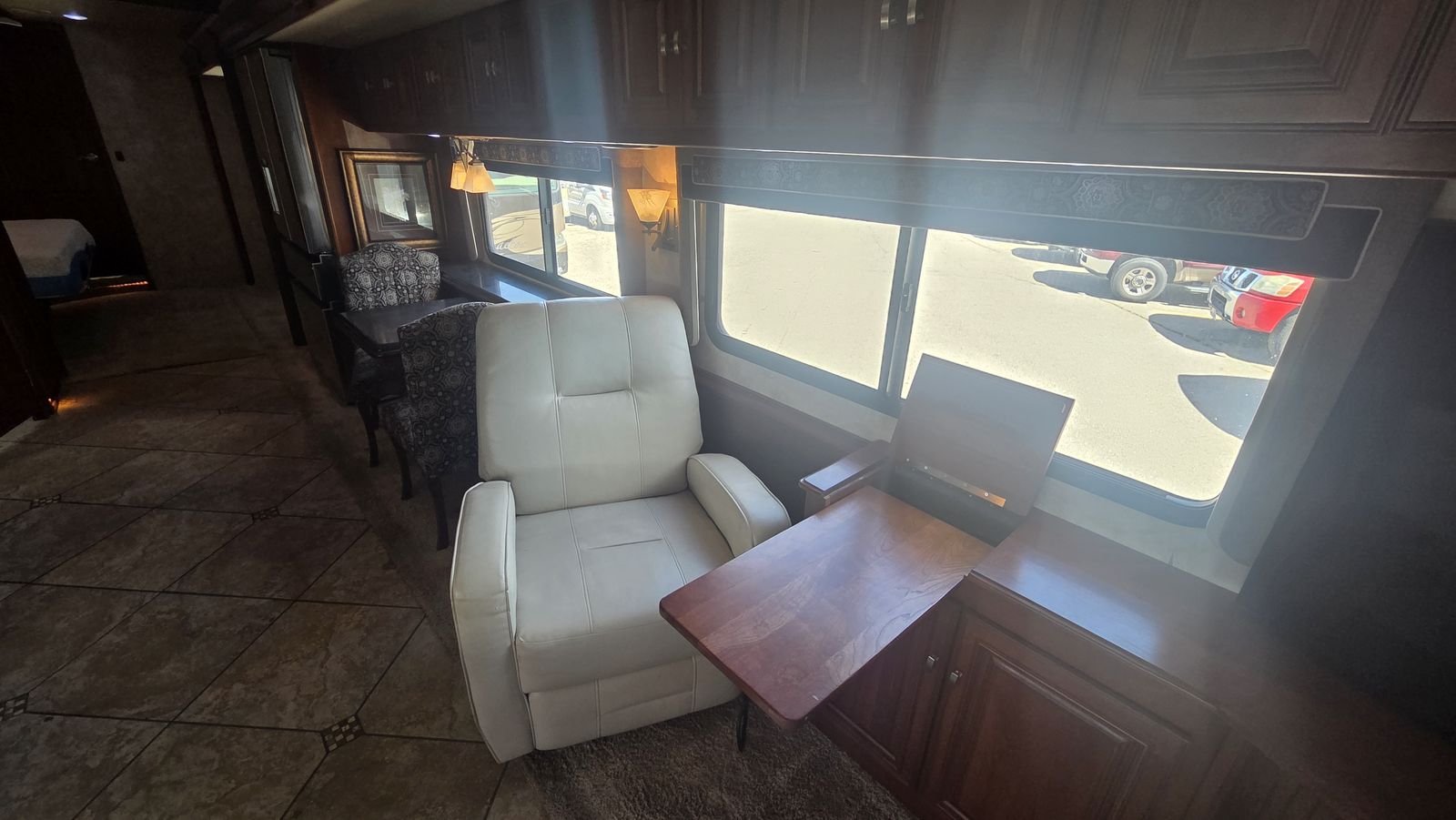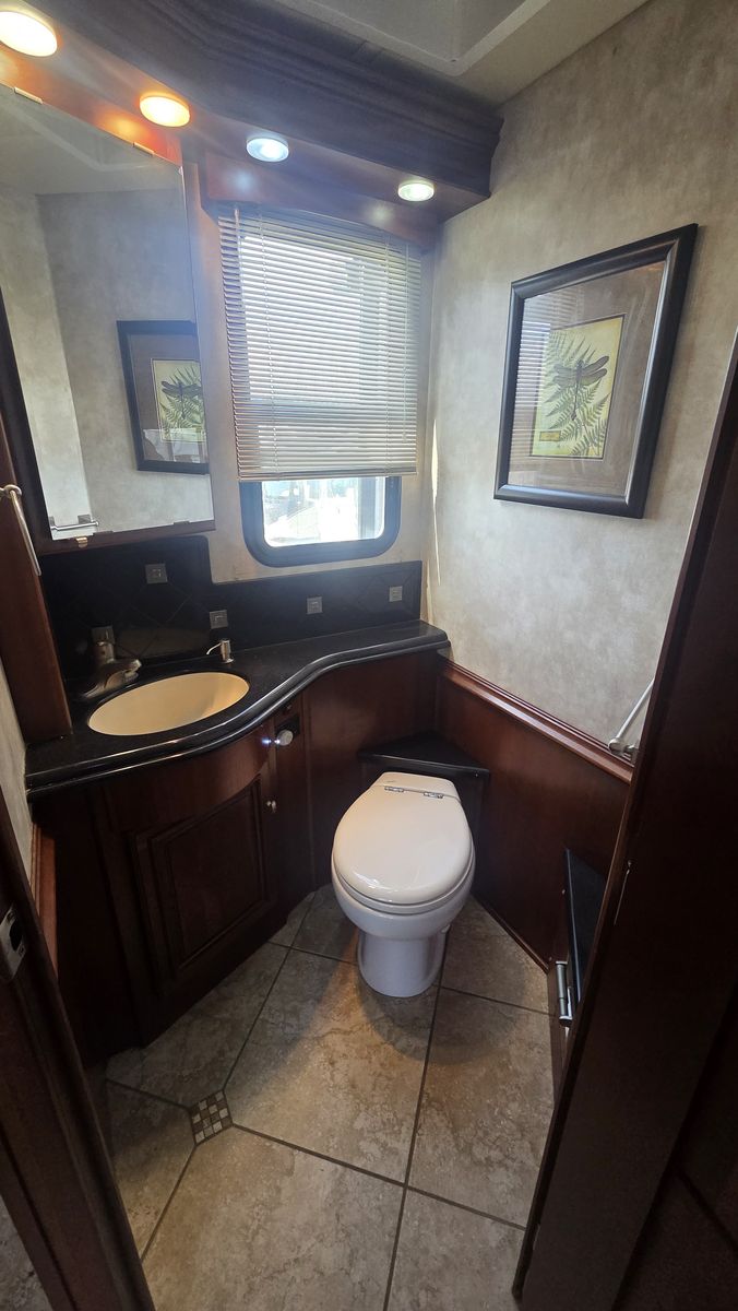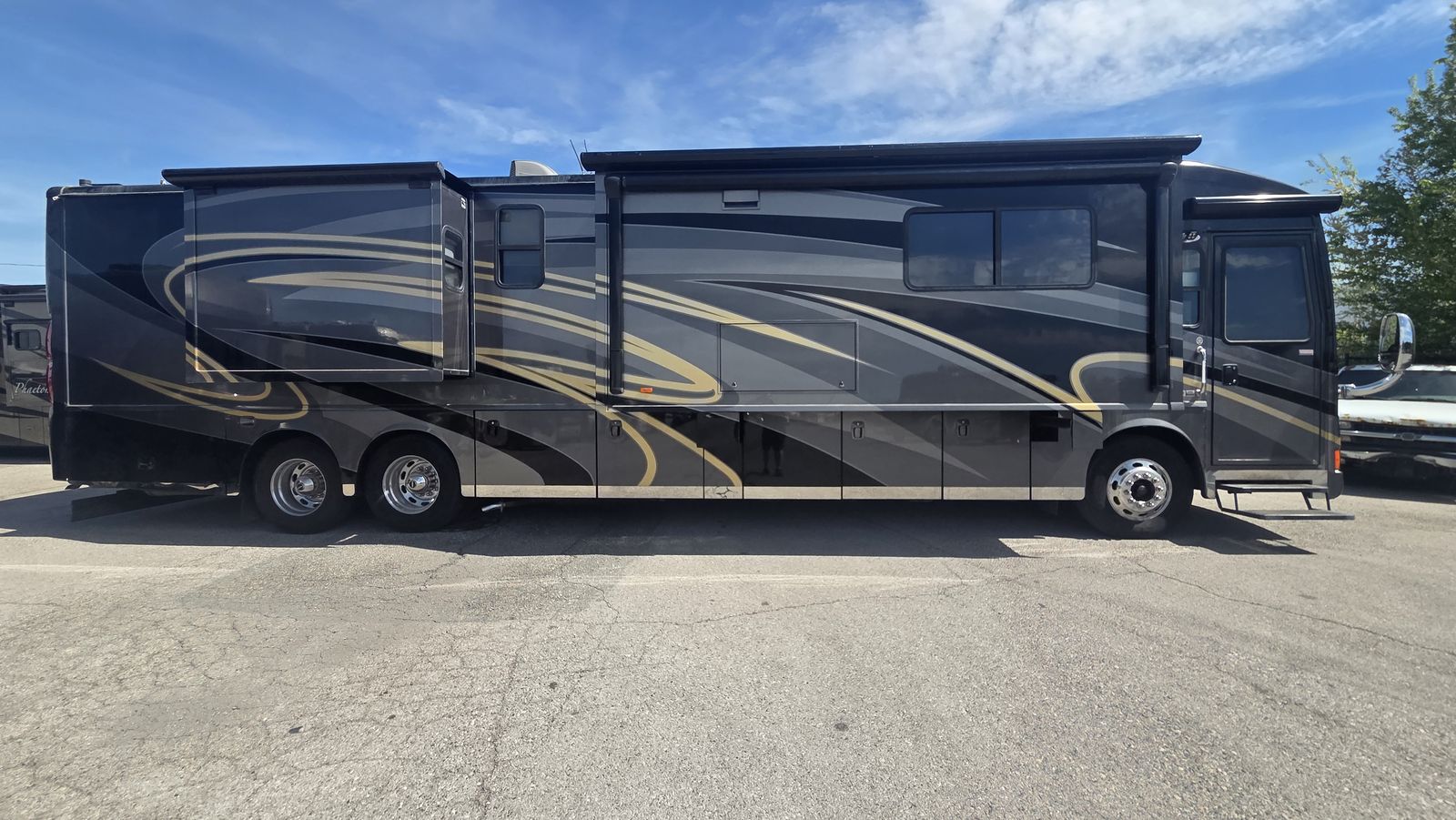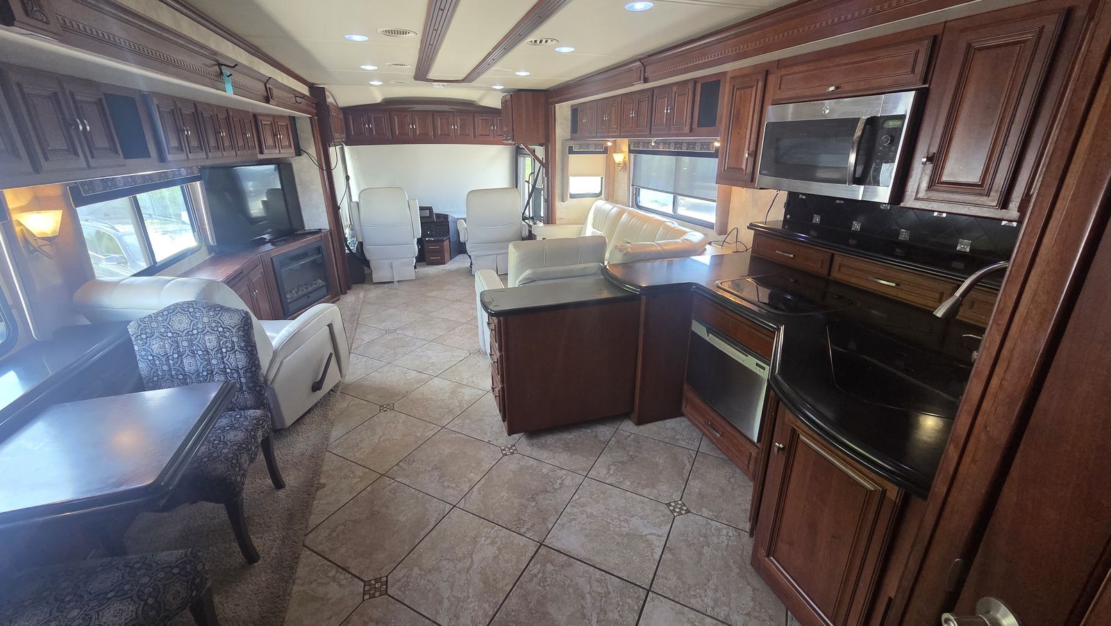 This Tour 42QD is a high-end diesel pusher with bath and a half, king bed, residential features, Aqua-Hot, and triple A/C units for maximum comfort. Built for extended travel or full-time use.