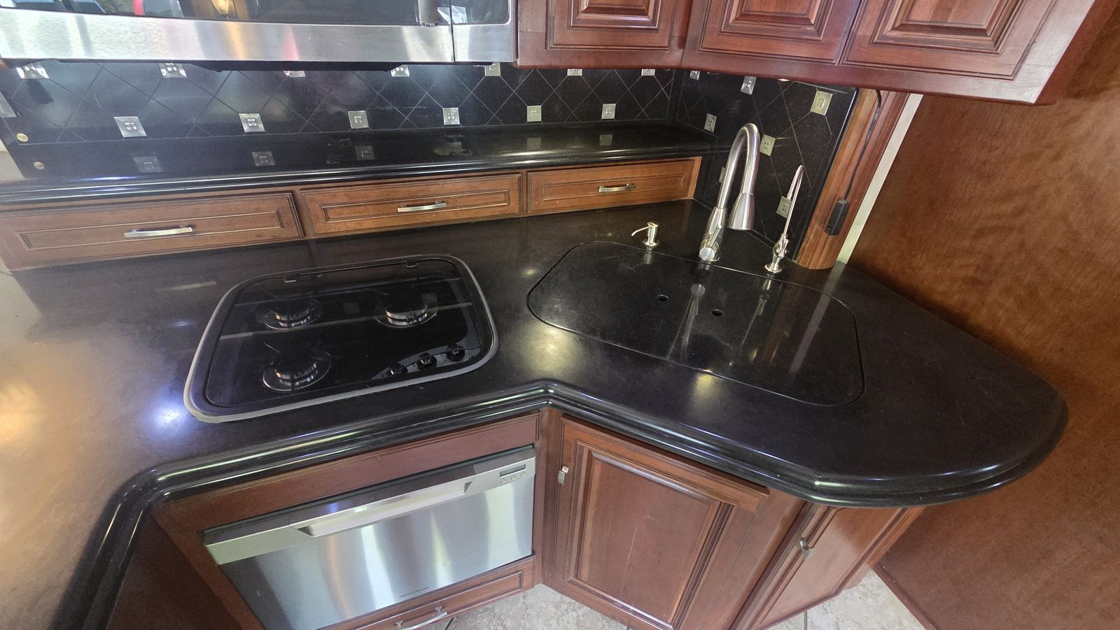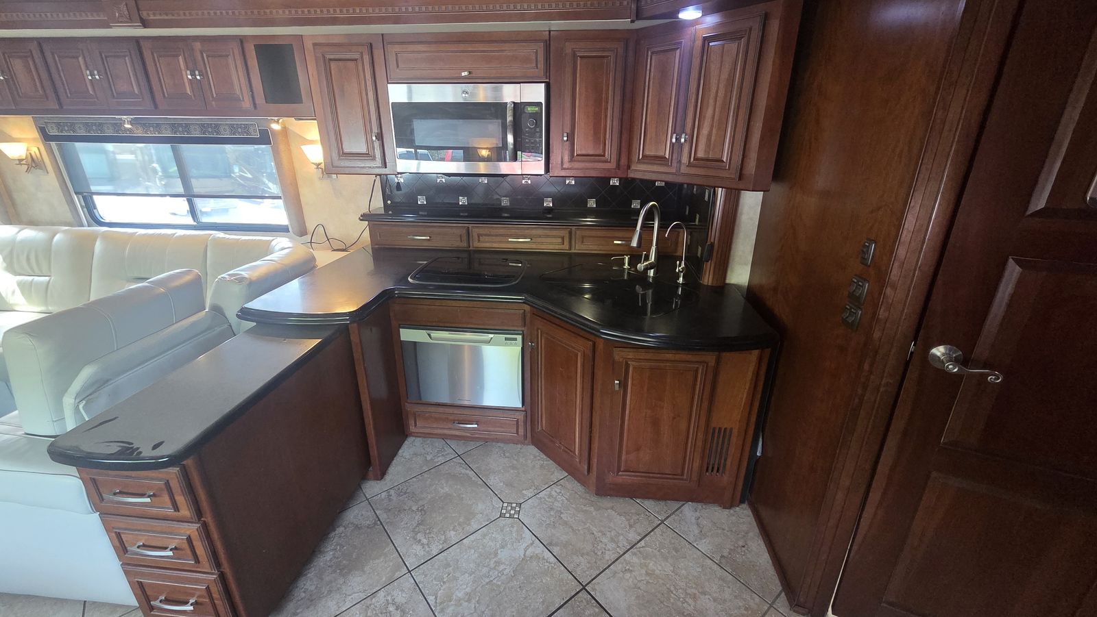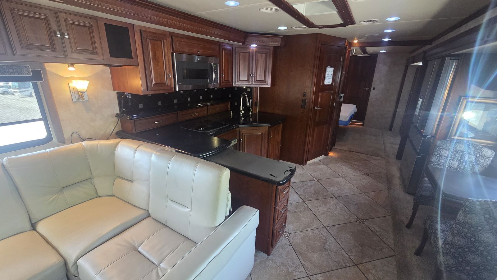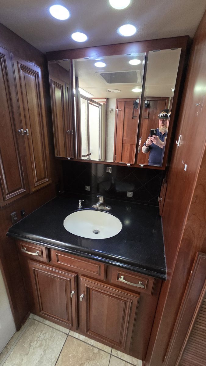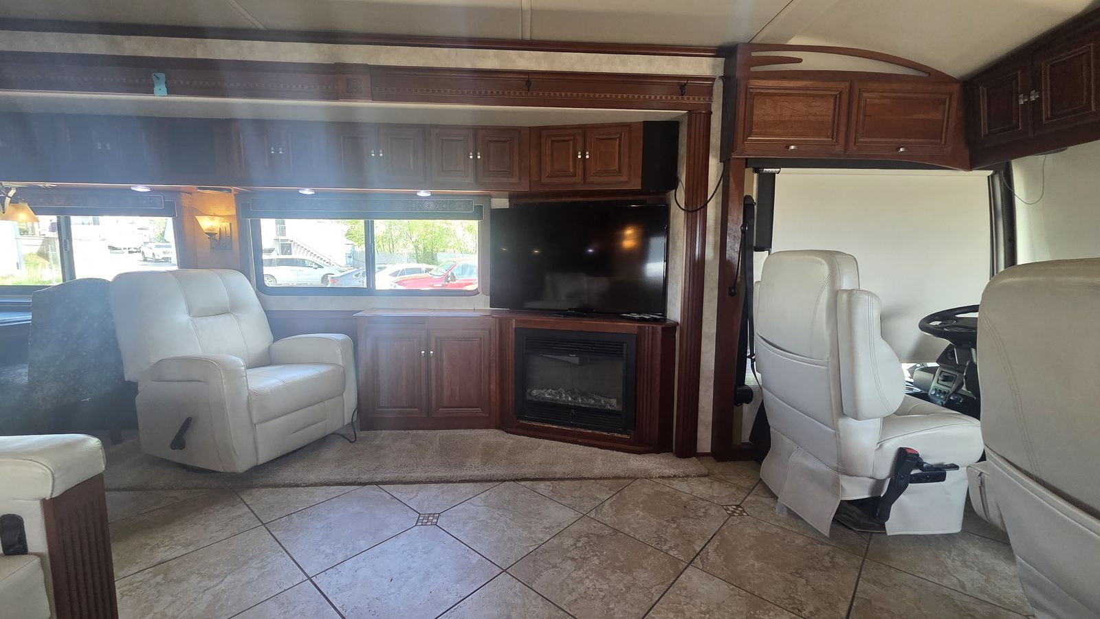 This Tour 42QD is a high-end diesel pusher with bath and a half, king bed, residential features, Aqua-Hot, and triple A/C units for maximum comfort. Built for extended travel or full-time use.