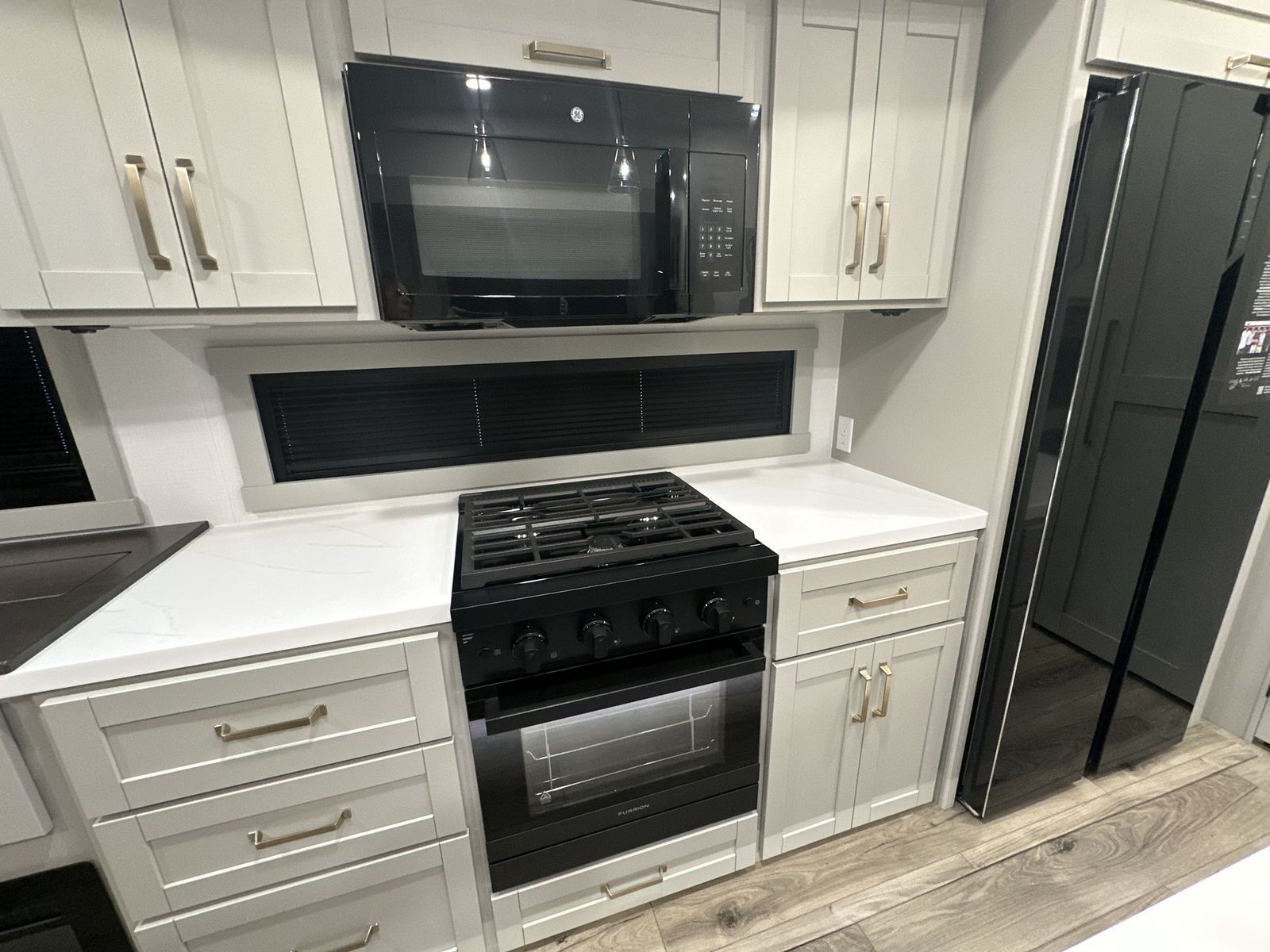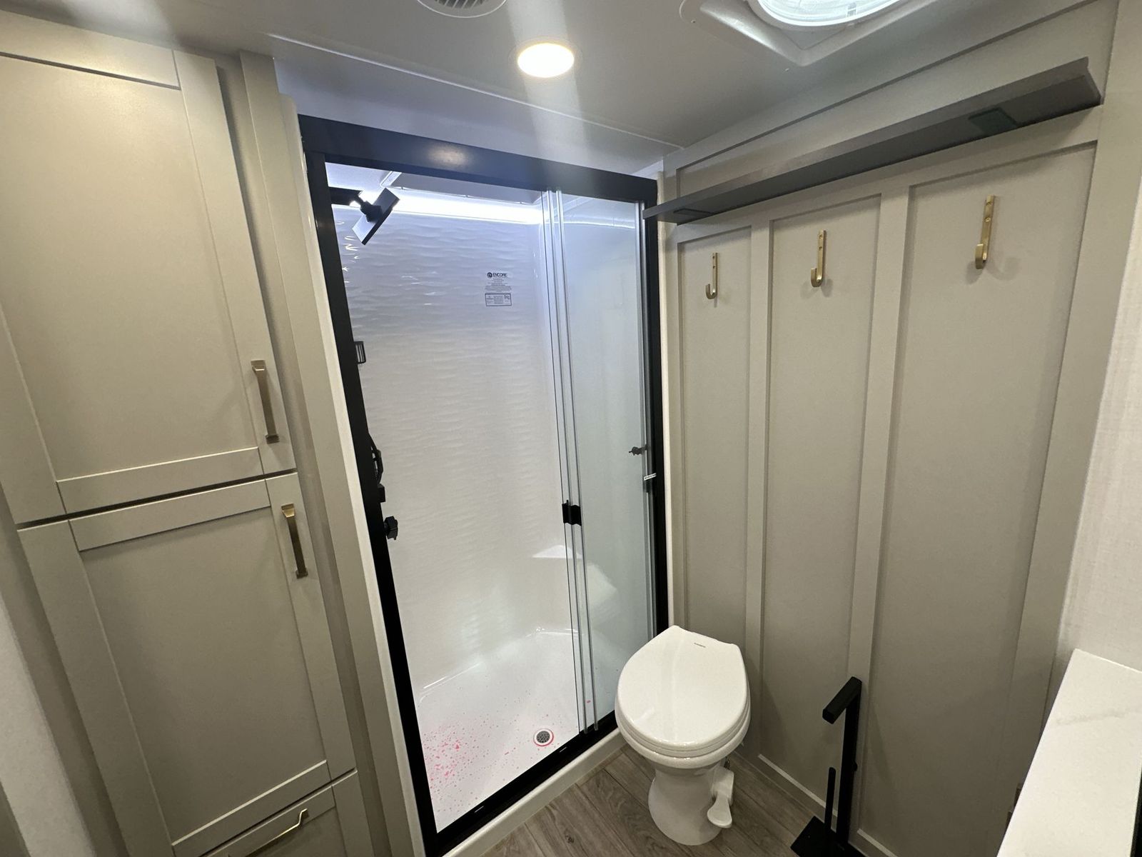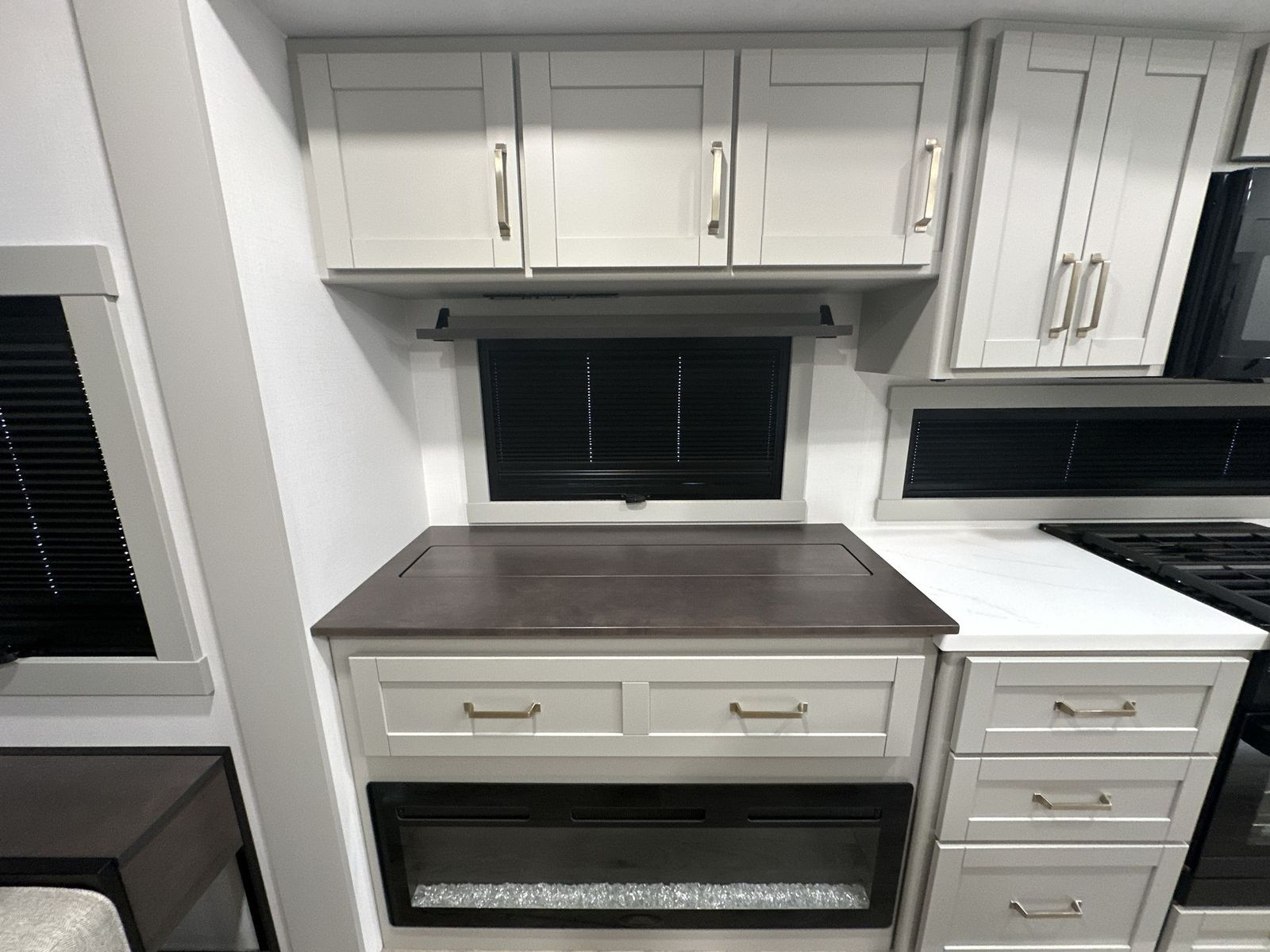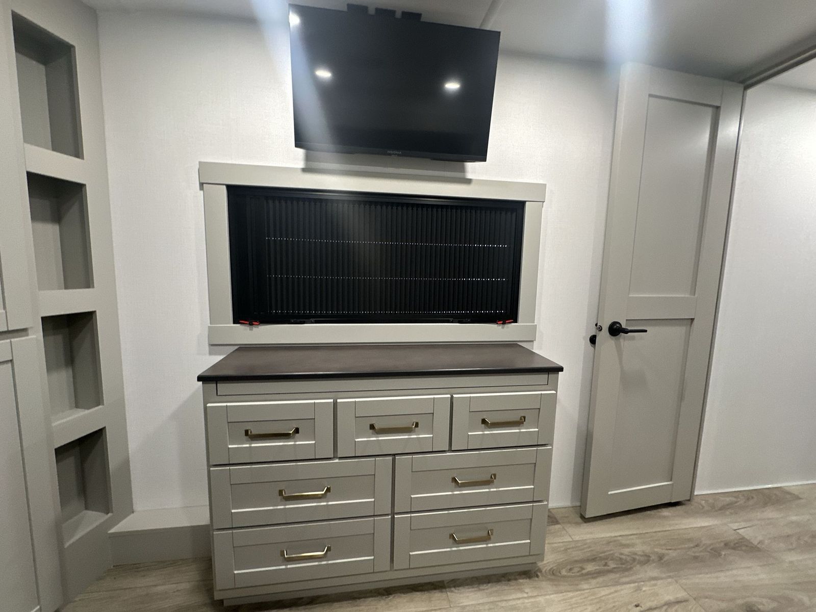 Brinkley Model Z fifth wheel 3600 highlights: Theater Seating Televator and Fireplace Integrated Pet Bowls Double Pull Out Trash Bins 16 Cu. Ft. Refrigerator Dual Bath Sinks This unit is perfect for weekends at the campground or extended stays! There is ample seating with a sliding desk/dining table, 62" theater seating, and a 72" tri-fold sofa along the rear wall. You can easily relax and enjoy the telescoping TV with a cozy fireplace below. The kitchen offers all that you need to prepare and cook meals just like home with a 16-cu. ft. refrigerator for your perishables, a 30" residential microwave oven, and three burner range top and oven. You will lovethe kitchen island all outfitted with pull-out pet bowls and double pull-out trash bins with an integrated Stow & Go paper towel holder. There is also an 84" pantry with adjustable shelves for all of your canned and dry goods.Head up the steps to a find a full bath and a private bedroom with aking bed slide all the way up front. A sliding dresser top features hidden storage which is perfect for jewelry and other personal belongings. The front wardrobe features mirrored doors, and the corner closet has been prepped for a stackable washer and dryer if you choose to add that option. The Brinkley mid-profile Model Z fifth wheels bring you clean lines and an upscale look with plenty of style and exciting new features like the industry first brass plumbing connections. These units also feature an automotive grade front cap, plenty of exterior storage, dual exterior hot and cold showers, and wide stance leveling jacks for easy set up.Residential frameless windows provide a clean look and beautiful views, and ample electrical outlets and 6 USB/USB-C outlets allow all of your electronics and appliances to easily be used and charged.