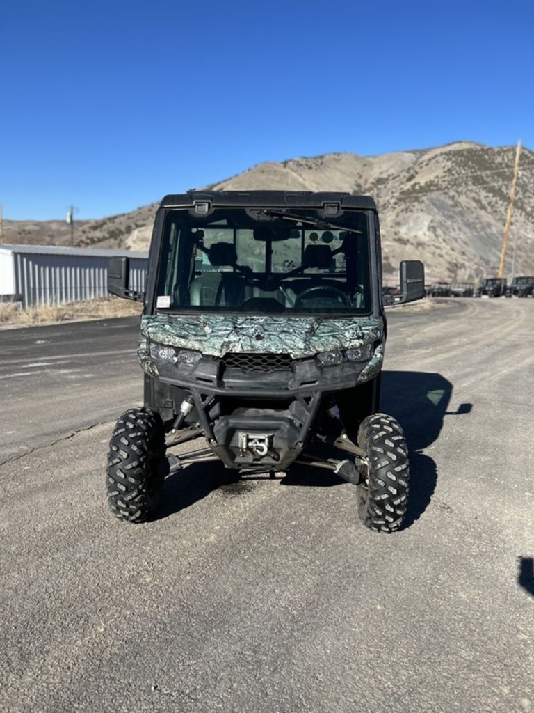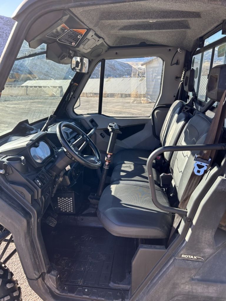 The 2018 Can-Am Defender XT CAB HD10 is a premium utility side-by-side featuring a 72-hp 976cc Rotax V-twin engine, PRO-TORQ transmission, and a fully enclosed cab with heater, wiper, and hard roof. It includes a 4,500-lb winch, arched A-arms, and 27-in. Maxxis Bighorn 2.0 tires, optimized for comfort and capability in all conditions.