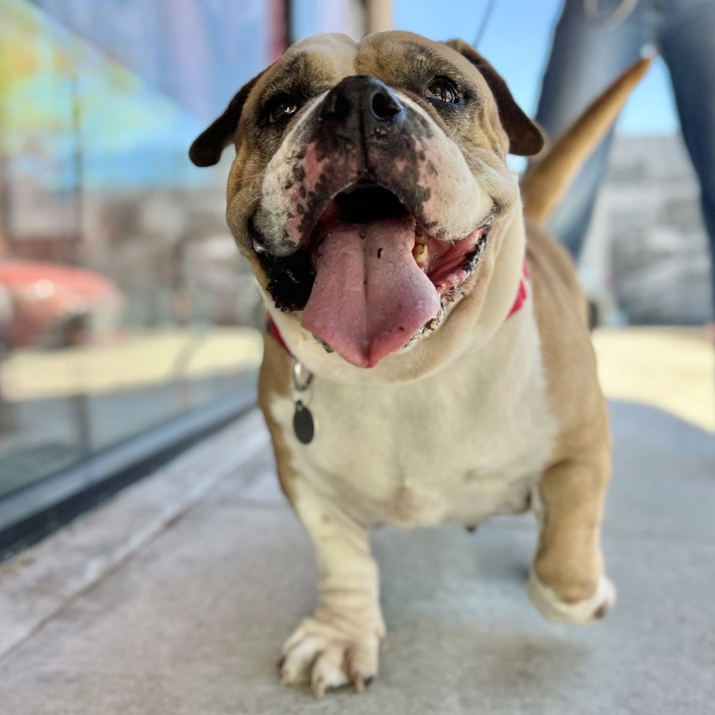 Hilda is a 5-year-old English bulldog mix with a chunky build and an even bigger personality to match. This happy-go-lucky girl greets life with pure enthusiasm, whether she’s marching over for pets or flashing her adorable, squishy-faced grin. She’s the kind of dog who brings instant joy wherever she goes, always ready to brighten your day with her playful spirit and lovable charm. Full of affection and easy to love, Hilda is happiest when she’s spending time with her people. She’s got a laid-back side to balance her bursts of excitement, making her a wonderful companion for both cozy days at home and short adventures. With her cheerful attitude and big heart, Hilda is ready to find a forever home where she can be cherished just as much as she’ll cherish you. Come meet sweet Hilda at Best Friends Lifesaving Center in Salt Lake City!