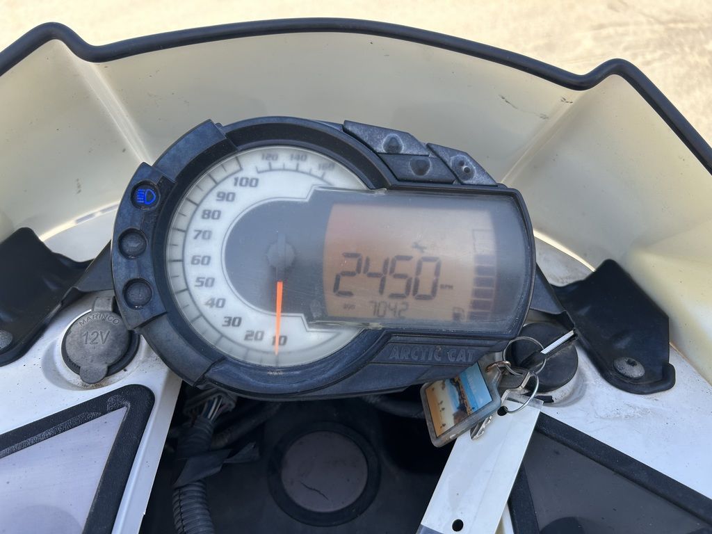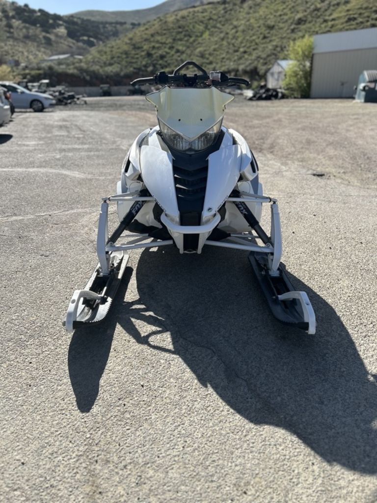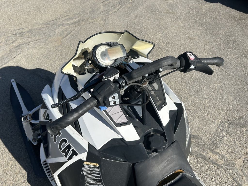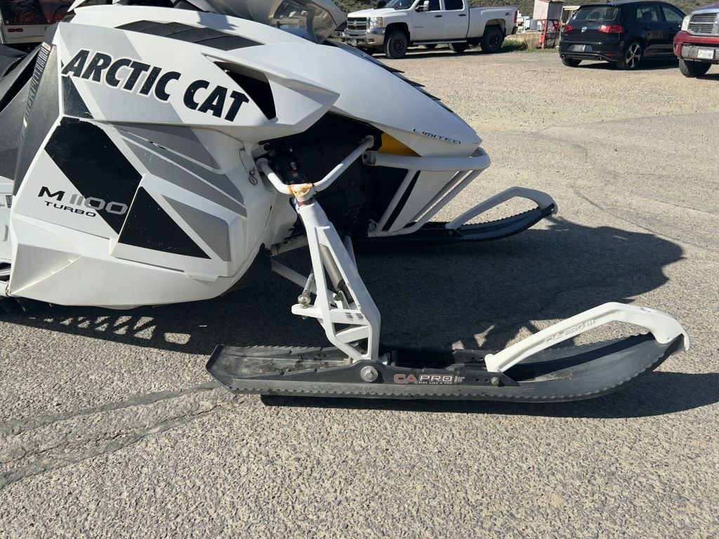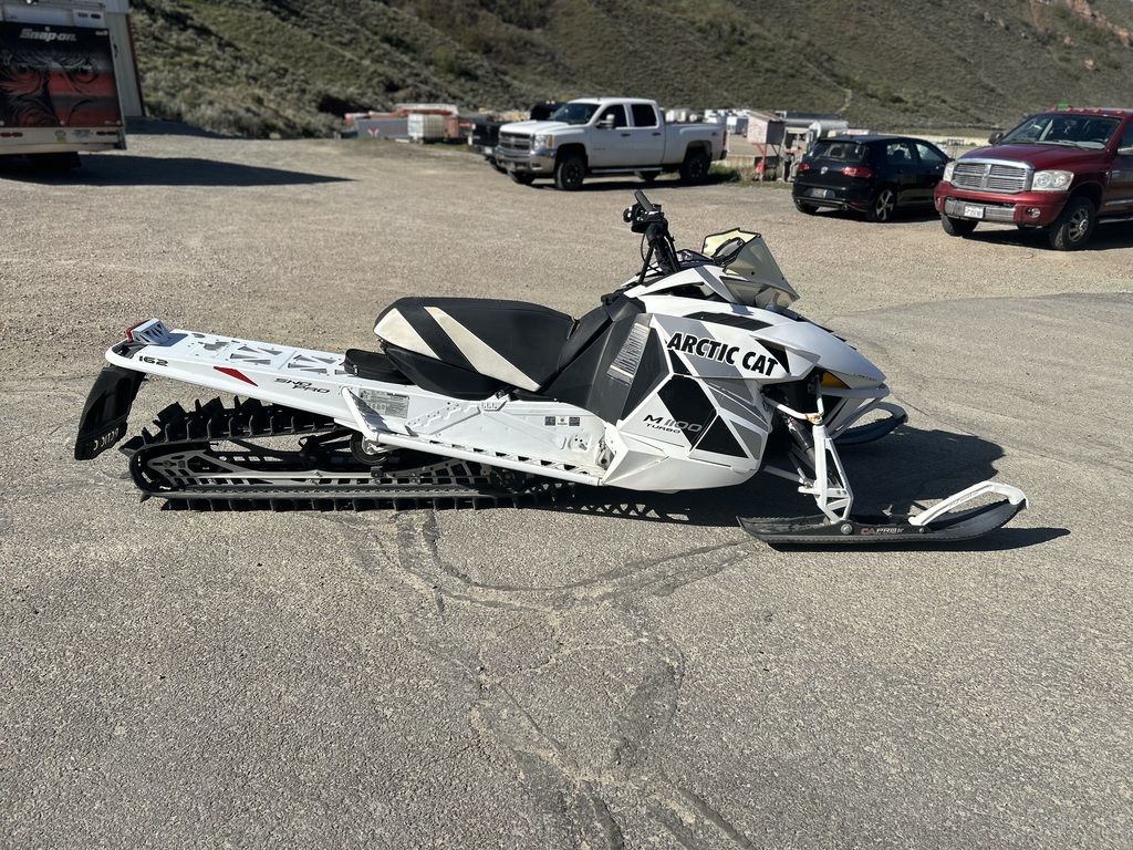 The 2013 Arctic Cat M1100 Turbo Sno Pro 162 is a high-performance mountain snowmobile powered by a 177-hp, 1056cc turbocharged 4-stroke engine. Built on the ProClimb chassis with a 162-inch track and 2.6-inch lugs, it features Fox Float suspension, adjustable ski stance, and electric start/reverse.