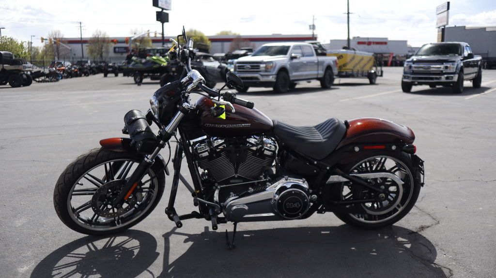 2018 Harley-Davidson® Softail® Breakout® 114 The all-new Breakout® model takes the idea of long, lean, asphalt-devouring muscle to the modern edge. Features may include: Digital Riser Gauge Wide digital instrumentation, mounted on risers to be close to your field of vision. Speed readout, fuel gauge, and gear indicator. 240mm Rear Tire A muscular tire that is the perfect embodiment of classic drag-bike heritage pumping through this ride. Milwaukee-Eight® Big Twin Engine A powerful, smooth-running engine with crisp throttle response and a pure, soul-satisfying rumble. Available in 107 and 114 engine displacements. 3.5 Gallon Tank A newly designed smooth top fuel tank that accentuates the big, powerful Milwaukee-Eight® engine. All-New Softail® Frame A lighter, stiffer frame (compared to previous Softail® and Dyna® models) that takes the idea of form and function to a place it’s never been before. It’s the look of a hard tail from a bygone era that delivers a thoroughly modern ride. High Performance Front Suspension New suspension technology provides the performance of a racing-style cartridge fork for reduced weight with linear damping characteristics. High Performance Rear Mono Shock All-new easily adjustable mono-shock rear suspension allows for dynamic cornering capability while preserving the hardtail look.
