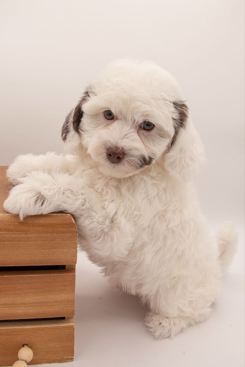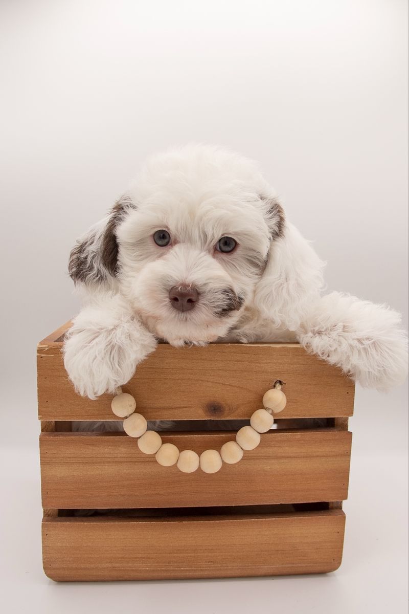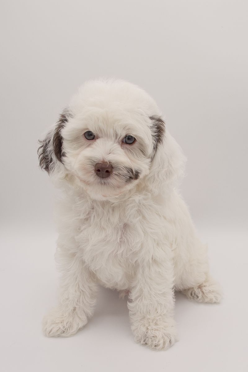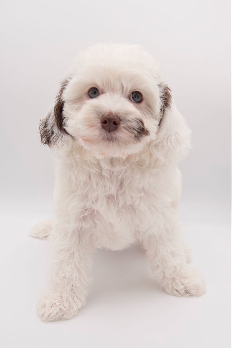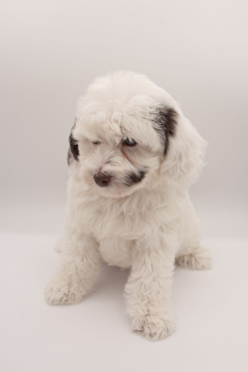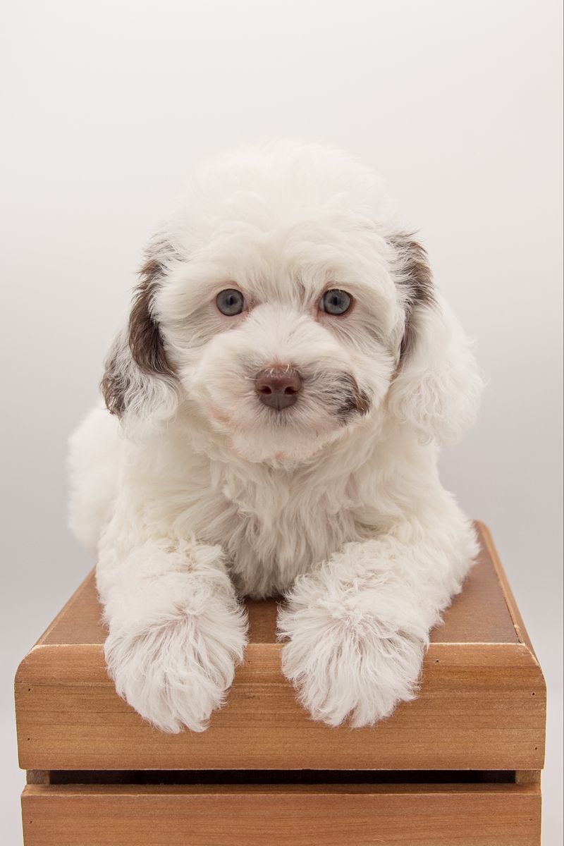 Yang (Chocolate Parti Male) is such a handsome tiny boy! He is estimated to be around 7-12lbs full grown. He is sweet and easy going, but has a playful spunky side to him as well. His coloring is absolutely stunning with his rich chocolate base, and extreme parti markings. He has the sweetest face that completely melts you!