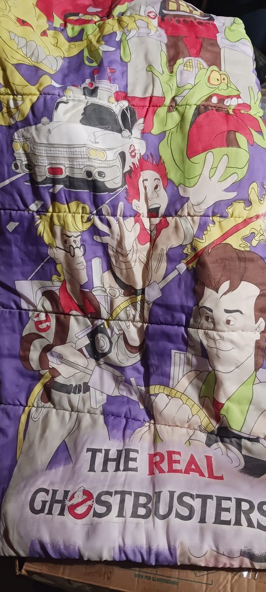 Kids size sleeping bag original Ghostbusters both sides with red inner lining and a sturdy easy zipper.