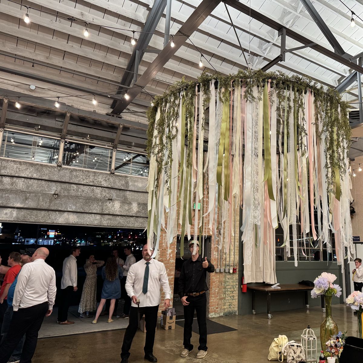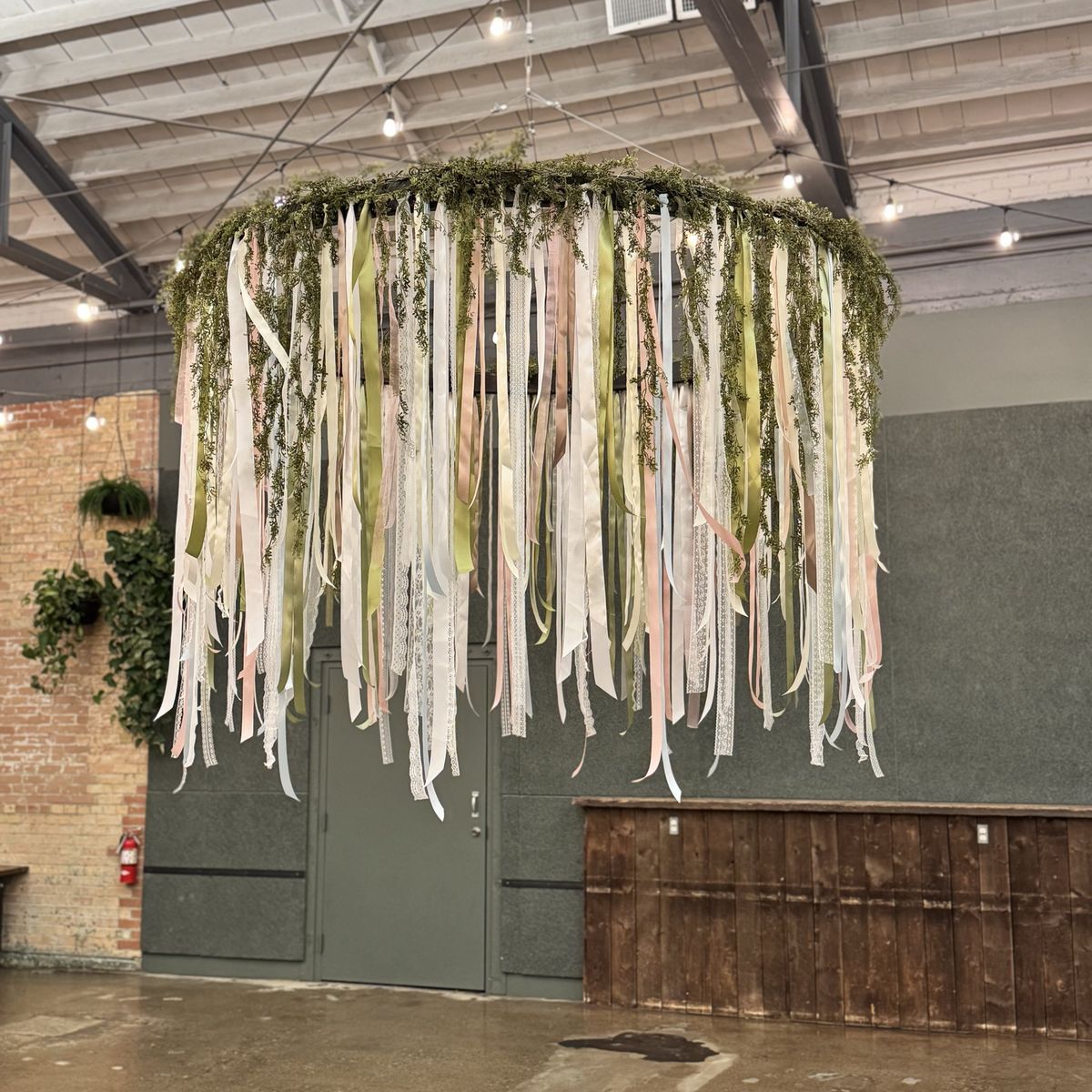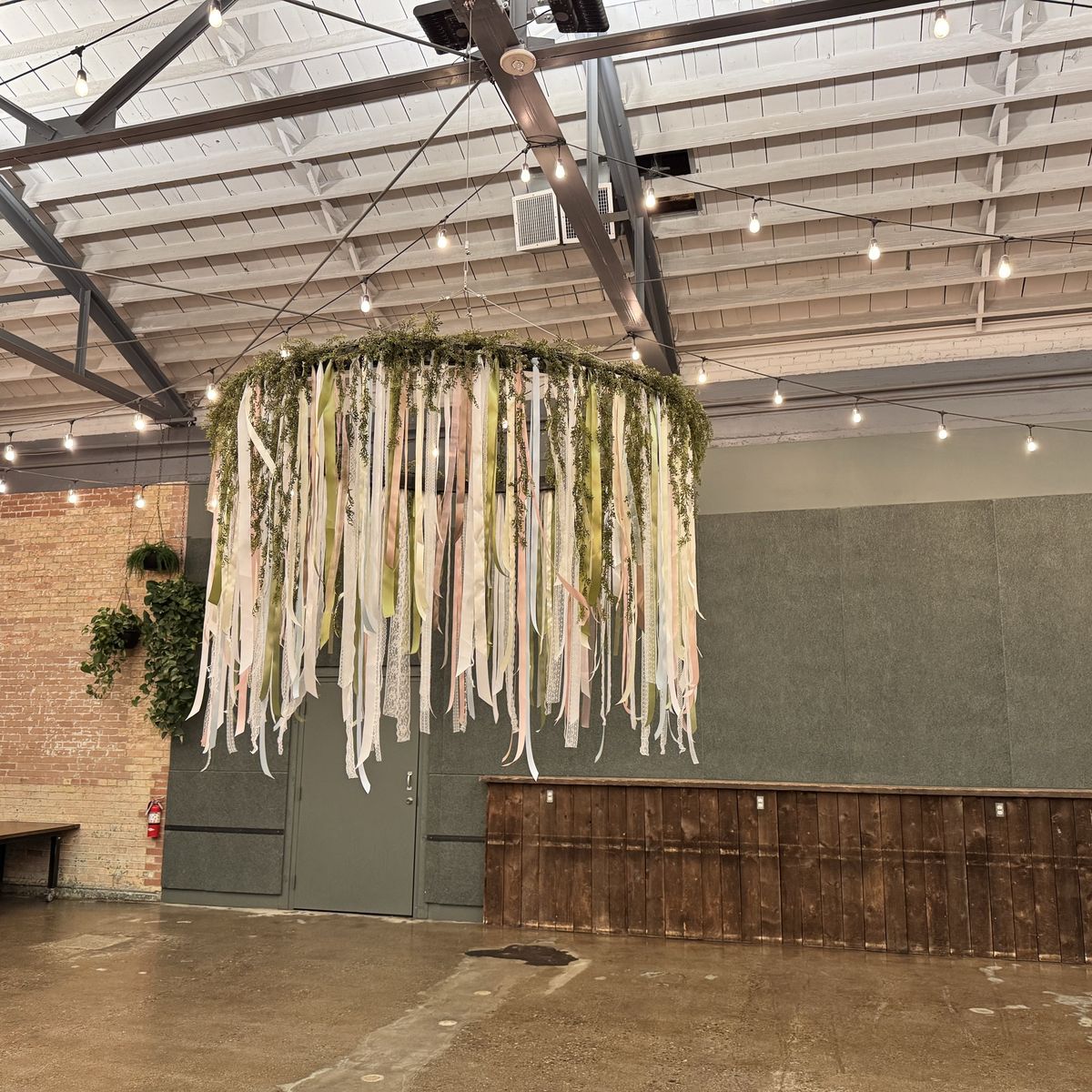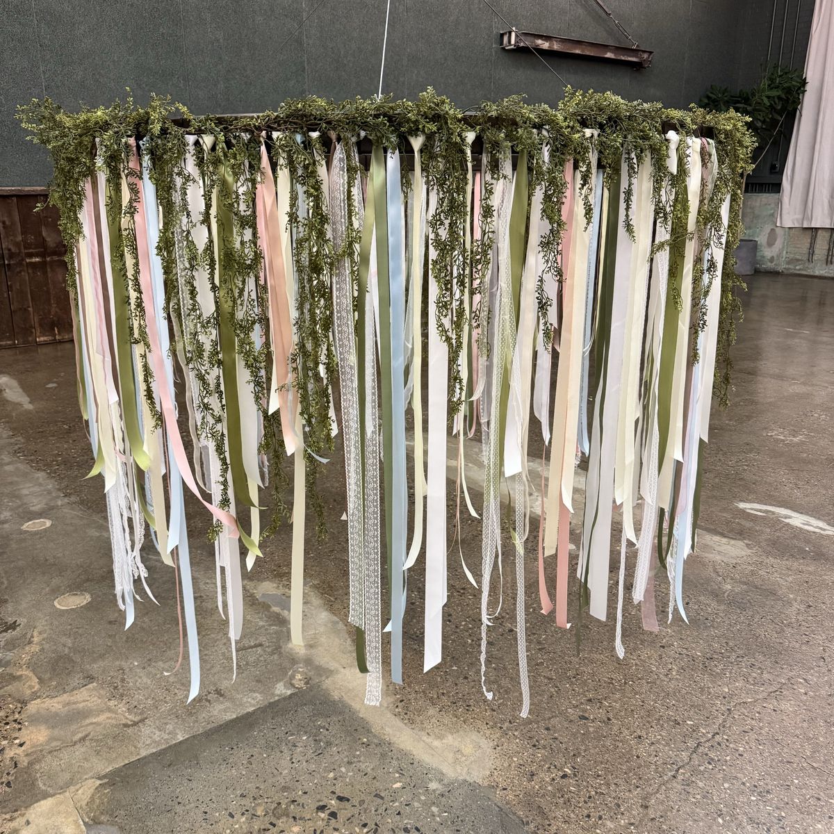 Venmo(2) 19’ long ribbon & lace garlands and artificial greenery garland. Used at the Bright Building in Provo on the drop down chandeliers. They are tied to paracord so they can easily be adjusted in length or add/remove ribbons. We used zip ties to attach. Paid over $400 for supplies. Selling as a set of 2