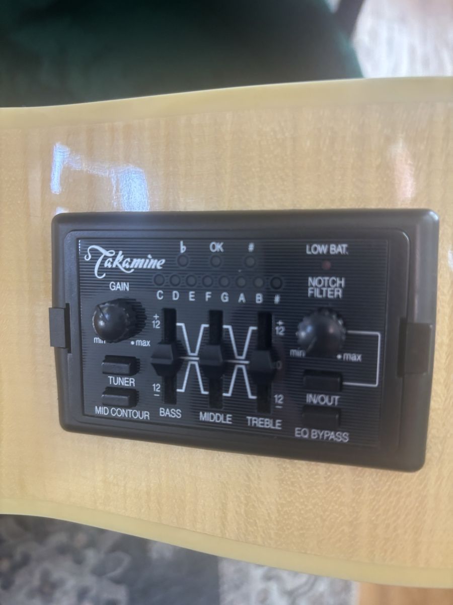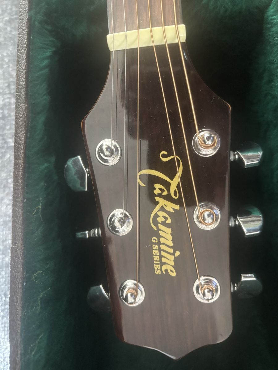 Takamini acoustic/electric. Played very little. Comes with hard case shown in photos. Listed as used good condition just in case you can find a blemish. Closer to excellent in actuality