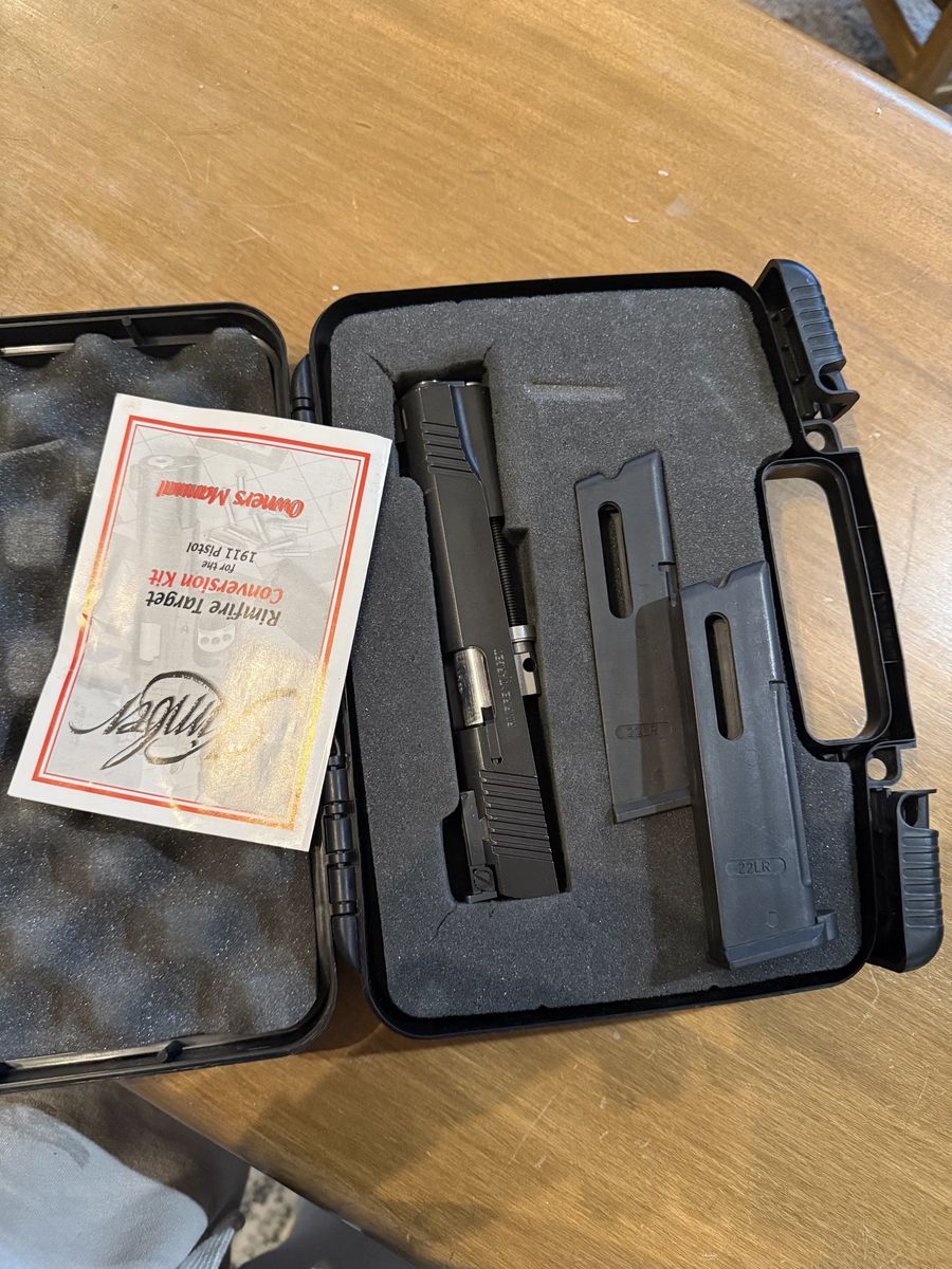 VenmoKimber .22LR conversion kit for 1911. Super fun and cheap way to shoot more without burning through .45 ammo. Runs well and a great setup for practice or just messing around at the range. Includes everything you need to swap it over price obo
