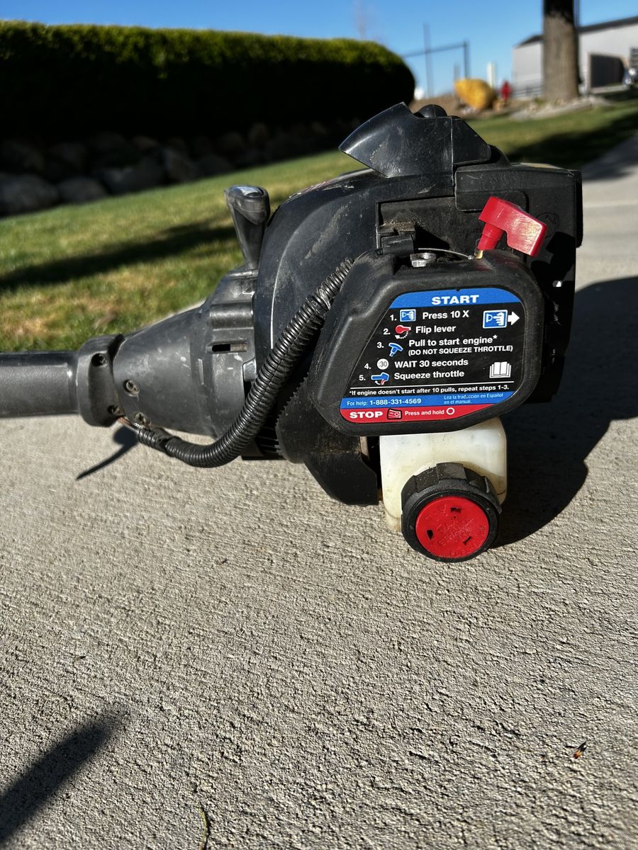 Straight trimmer head and 5 attachments! Blower, edger and 3 string trimmer attachments! Always put fuel stabilizer in mixed gas to keep it running but this time it doesn’t appear to have worked. Motor starts but won’t stay running. Probably carb or something else that I’m not willing to mess with. Buy all the accessories at less than half price and get the runner head free if you would like to try and get it running. Cost for all parts over $500. We’ll sell everything together for $100 total! Hurry before they are gone!