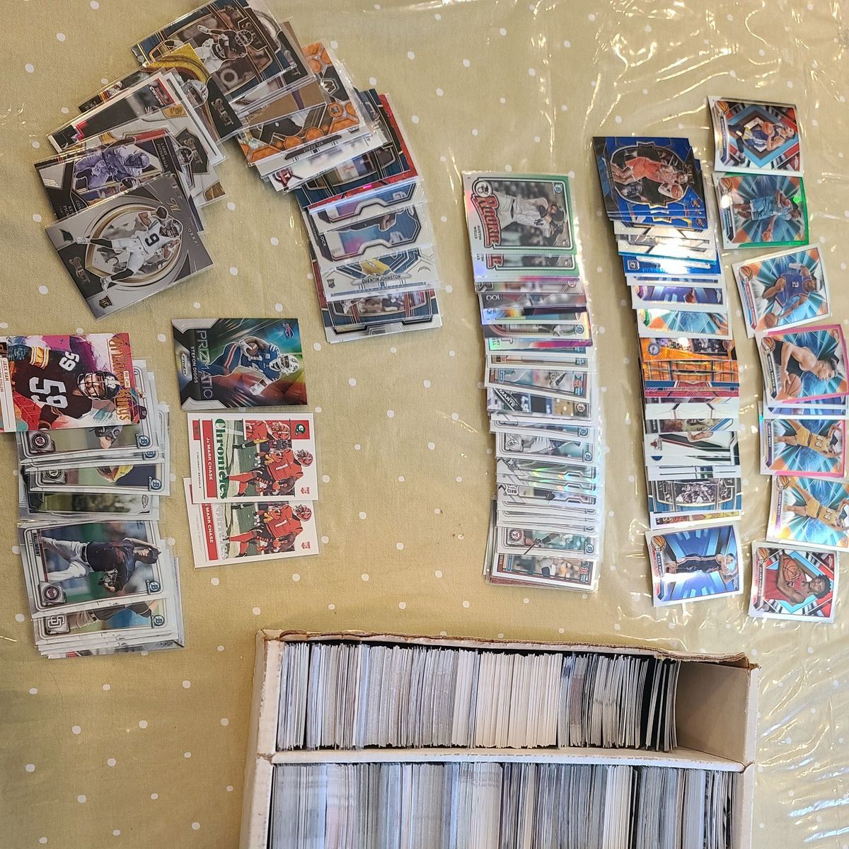 VenmoThis is a 3200 count box of basketball, football and baseball, from topps chrome bowman chrome, etc. Some numbered cards, refractors, etc.