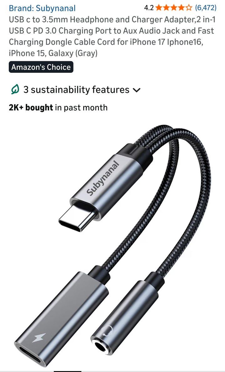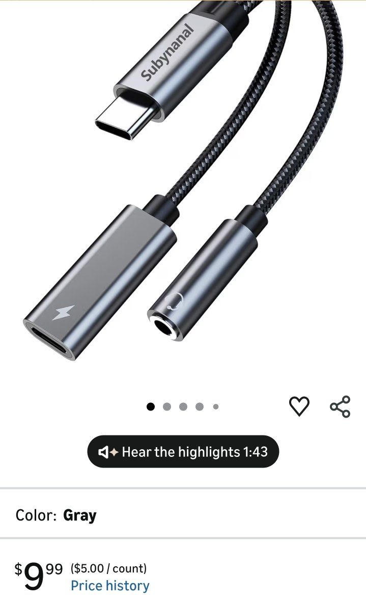 NEW USB c to 3.5mm Headphone and Charger Adapter,2 in-1 USB C PD 3.0 Charging Port to Aux Audio Jack and Fast Charging Dongle Cable Cord for iPhone 17 Iphone16, iPhone 15, Galaxy's (Gray). See all photos, text message is better, see my other adds, thank you.