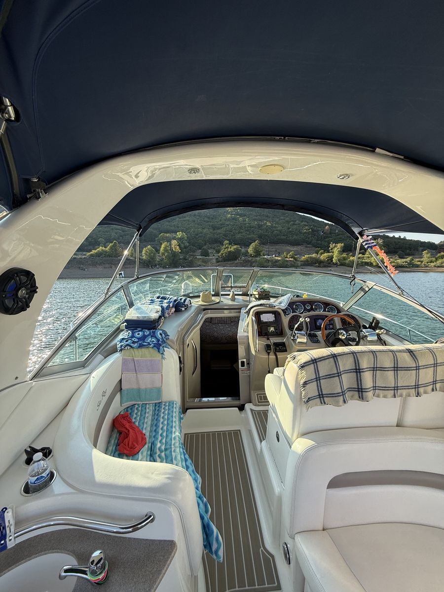 Selling my 2003 SeaRay 320 Sundancer. 37 ft 0 inches long anchor to swim deck. 11.5 ft wide. Twin v-8 6.2 liter MerCruiser Engines, 640 Horse Power, approx 1000 hrs. Impellers done 2025. 4 new batteries 2025. Garmin touch screen GPS, Garmin multi-function display, Garmin marine Radio, NMEA 2000 backbone. Multicolor Underwater lighting. Upper deck stereo mood lighting. Rockford Fosgate sound system with subs upper and lower controls. Kohler Generator, maintenance 2025. 2 refrigerators. Microwave. Electric stove top. Heating and air conditioning. Hot and cold water. Swim deck shower. Deck sink. Rain gear and biminis all in good condition. All original Appolstry in excellent condition. Brand new SeaDeck on upper and swim deck. I also had carpet do upper deck. All in Excellent Condition. 5 month seasons since new. Never on the ocean. Always climate control storage in the winter. Trailer stored indoors during summer months. Trailer refurbished. Boat resides on Pineview Yatch club during summers. Perfect maintenance. . $125,000. Call or text Dan anytime 214-783-5972 for more info and better pics or video.