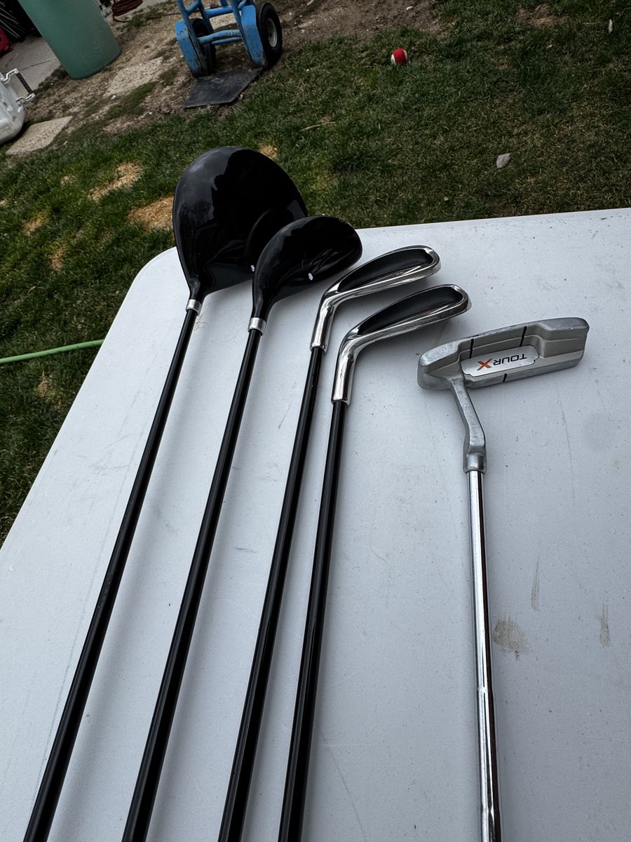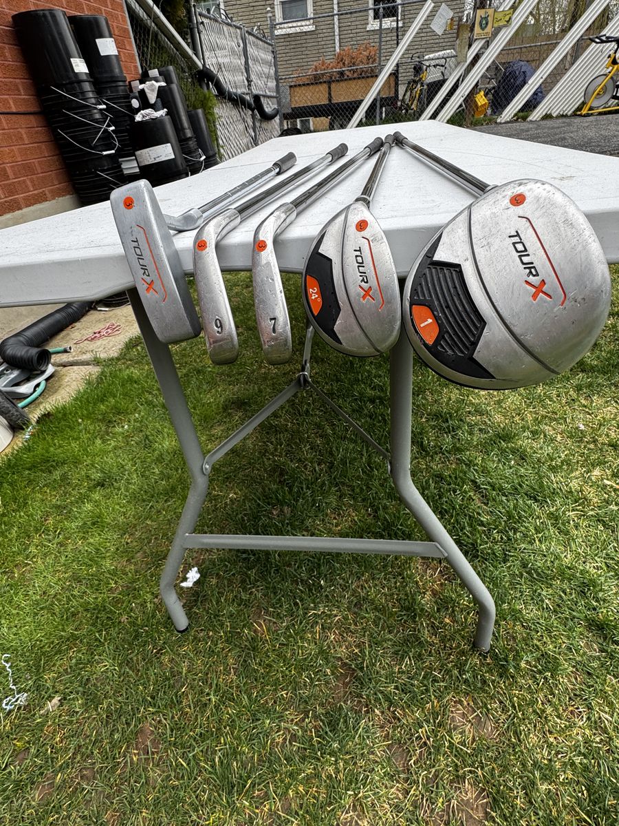 VenmoDriver 42", Hybrid 38.5", 7 iron 36", 9 iron 35.5" and putter 32.5". Includes a Tour X bag with stand and shoulder strap. 4 pockets and rain cover.