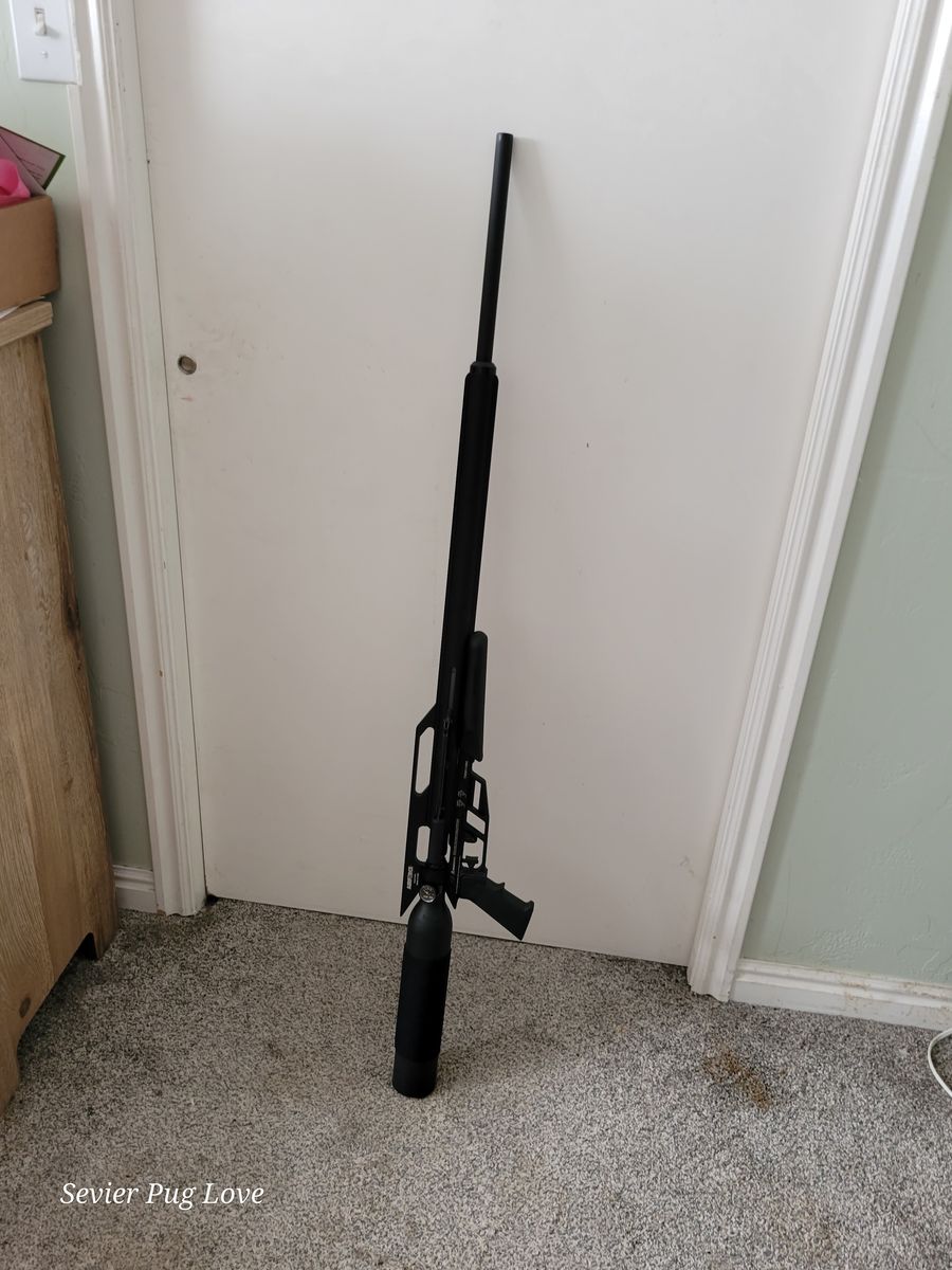VenmoAirforce Texan Airgun With the ability to launch .45 caliber projectiles at over 1000 feet per second and generating energy levels of over 500 foot pound, the Texan takes its place as the world’s most powerful production air rifle. Easy to load and simple to use, this Big Bore air rifle will let you focus on hunting with the knowledge you have enough power to get the job done. The addition of .357 and .308 Calibers provides greater flexibility for predators, varmints, and other small to medium size game Features: • .257, .308, .357, .457 or .50 Caliber Lothar Walther Barrel • Pressure Relief Device • Adjustable Power. See our Manual for more information on how to tune your rifle for your specific ammo used. • Low Effort Side Lever Cocking • Available in Original Black Finish Technical Specifications: • Velocity: up to 1100 feet per second* • Max Fill Pressure: 3000 psi / 200 bar (Only use compressed air or dry nitrogen) • Action: Single shot • Weight: 8 lbs • Length: 48 inches • Barrel:34 inches • Trigger: 2 stage, adjustable for position • Sights: Open or optical may be installed • Air Tank Volume: 490cc • Safety: Automatic on cocking • Energy: up to 500 foot pounds*